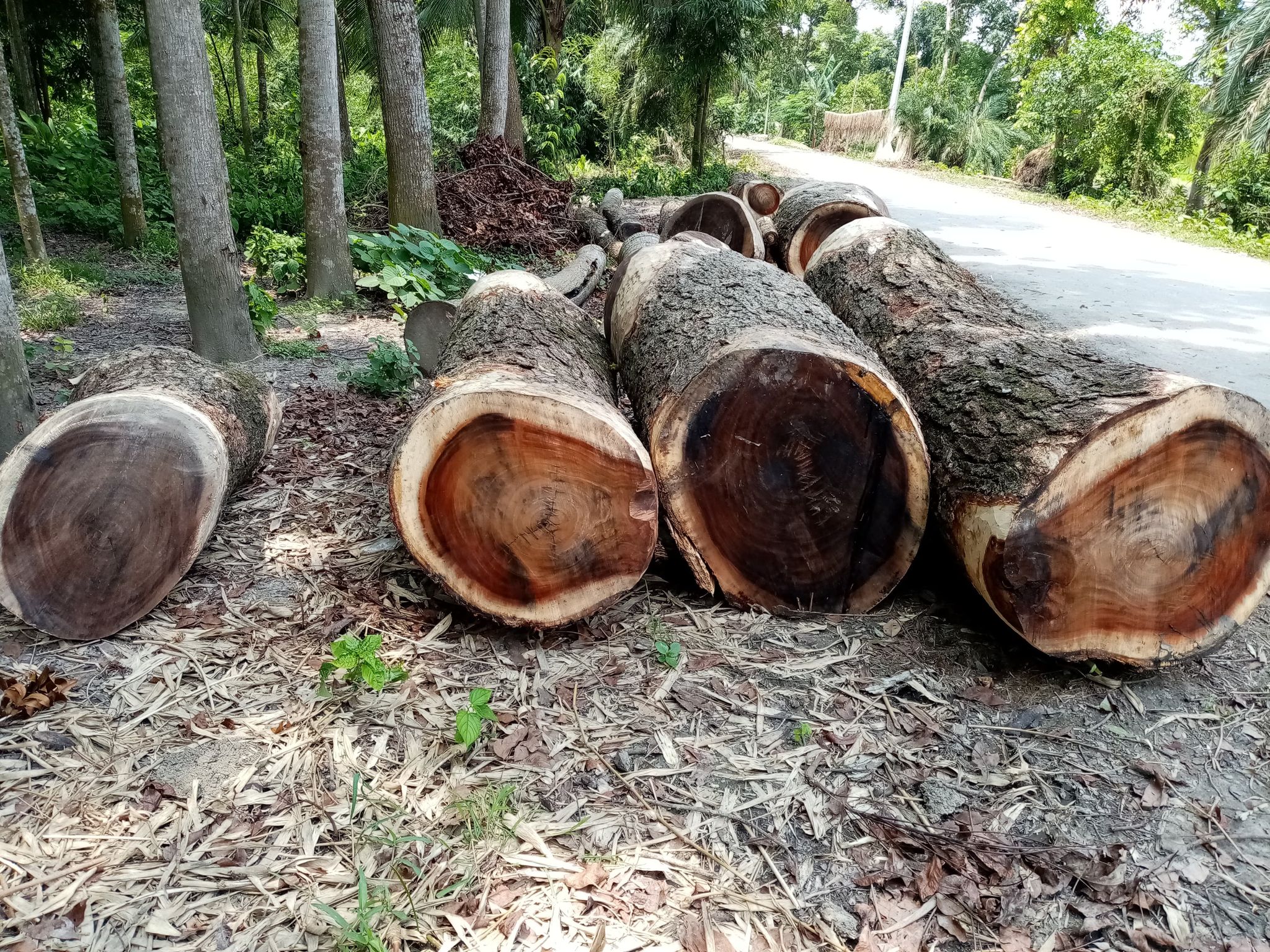 স্থানীয়রা জানায়,সড়কের পাশে থাকা প্রায় ৫’শ টি বড় মেহগিনি,কড়াই,শিশু গাছ