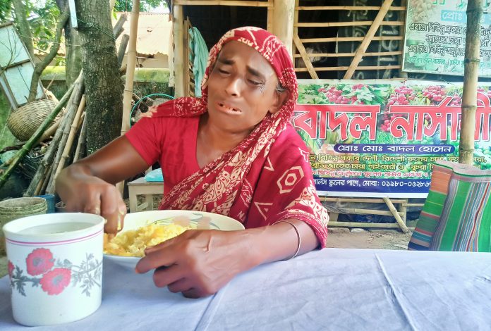 জসিম উদ্দিন, শার্শা : স্বামী আর একমাত্র সন্তানকে হারিয়ে অসহায় হয়ে মানবেতর জীবনযাপন করছে ছবিরননেছা (৭২) নামে এক দুখিনী মা।জীবন বাঁচাতে দু’বেলা দুমুঠো খাবার যোগাড় করতে চায়ের দোকানে পানি তুলার কাজ করেন তিনি। সিমীত রোজকারে খেয়ে না খেয়ে চলছে তার সংগ্রামী জীবন।রবিবার দুপুরে শার্শার নাভারণে পথ শিশু ও পাগলদের খাবার বাড়ি খেতে এসে কান্নারত অবস্থায় দৈনিক যশোরের ক্যামেরায় বন্ধি হয় ছবিরন। জানা যায় তার কান্নার পেছনের আলোকিত ঘটনা।চোখের কোনে এক সমুদ্র জল নিয়ে ছবিরন্নেছা বলেন, সকাল থেকে বিভিন্ন চায়ের দোকানে পানি তুলতে তুলতে ক্লান্ত হয়ে গেছি। এখন আর শরীরে বল পায়না। তারমধ্যে প্রচন্ড ক্ষুধার জালায় মাথা ঘুরছে।১৫ টাকা নিয়ে ক্ষেতে যাচ্ছিলাম এখানে আসতেই ইনারা আমাকে ক্ষেতে দিয়েছে। অনেক তৃপ্তি নিয়ে খেয়েছি। এখন একটু ভাল লাগছে বাবা।পরিবারে কে কে আছে এমন প্রশ্নে অঝর ধারায় কষ্টমাখা জল গড়িয়ে পড়লো ছবিরন্নেছার দু’চোখ দিয়ে। কান্না করতে করতে বলেন এজগতে আমার আপন বলতে কেউ নাই।৭ বছরের এক ছেলে সন্তানকে ফেলে স্বামী মারা গেছে ৪০ বছর আগেই। একমাত্র সন্তানকে বুকে আগলিয়ে বেঁচে থাকার ইচ্ছে নিয়ে পরের দুয়ারে দুয়ারে কাজ করে সন্তানকে বড় করেছি।আজ সেই সন্তানও বিয়ে করে দুরে কোথাও আলাদা থাকে। আমাকে কখনও তার বাড়িতে যেতে দেয় না, খেতেও দেয়না বলতে বলতে হাউমাউ করে কান্নায় ভেঙে পড়েন।স্বামী সন্তানহীন ৭২’র বৃদ্ধ ছবিরন। তবু কেউ রাখেনা তার খোঁজ। পাইনা বয়স্ক ভাতার কোন সুযোগ সুবিধা। একটি মাত্র পেটের ক্ষুধায় রোজকার করতে রাস্তায় তিনি।পথ শিশু ও পাগলদের খাবার বাড়ির পরিচালনাকারী বাদল হোসেন বলেন, ছবিরন এখান দিয়ে যাওয়ার সময় মনে হলে তিনি খুব ক্ষুধার্ত। তাই তাকে রাস্তা থেকে ডেকে আমাদের এই ফ্রি খাবার বাড়িতে এনে খেতে দি। মাত্র দুই দিনে ফ্রি খাবার বাড়িটি খুব আলোচিত হয়েছে। ছবিরনকেও প্রতিদিন খাবারের জন্য বলা হয়েছে। ছবিরন যতদিন বেঁচে থাকবে ততদিন তিনি এখান থেকে খাবার পাবেন।খাবার বাড়ির প্রধান উদ্যোগতা ও মানব সেবা হেল্প ফাউন্ডেশনের প্রতিষ্ঠাতা দেশ সেরা উদ্ভাবক মিজানুর রহমান মিজান বলেন, পথ শিশু, পাগল, প্রতিবন্ধি, ভিক্ষুক এবং ক্ষুধার্ত মানুষের খাবার খাওয়ানোর জন্যই আমাদের এই পথচলা। মানব সেবা হেল্প ফাউন্ডেশনের সার্বিক সহযোগিতায় আর্তমানবতায় কাজ করছে প্রবাশ ও দেশের কয়েক হাজার বিভিন্ন শ্রেণিপেশার মানুষ। আমি সকলের প্রতি আন্তরিক ভাবে কৃতজ্ঞতা প্রকাশ করছি।