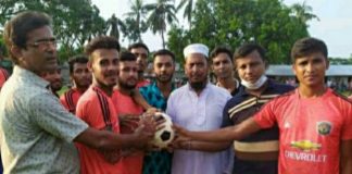 রাজগঞ্জের চালুয়াহাটিতে খেলোয়াড়দের মাঝে ফুটবল ও জার্সি বিতরণ