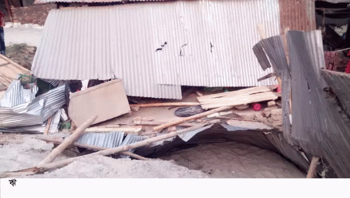 বসবাস করে। আমি অন্যত্র বাড়ি করার জন্য জন্য বিধবাকে ৮০ হাজার টাকা দিয়েছিলাম ওরা টাকা নিয়ে তা আবার ফেরত দিয়েছে। আমি কিছুদিন আগে ওই বিধার ছেলের নামে থানায় চাঁদাবাজি মামলা দিয়েছিলাম। এ ঘটনায় থানায় বসে একটি সালিশ হয়েছিলো। সালিশে তারা একলাখ টাকার বিনিময়ে জায়গা ছেড়ে দিতে রাজি হয়েছিলো। আমি ওদের ৮০ হাজার টাকা দিয়েছিলাম কিন্তু ওরা জায়গা ছাড়েনি। যে কারনে আমি ওদের ঘর ভেঙ্গে দিয়েছি। আর মালামাল রাখার জন্য ছোট্ট একটি ঘর রেখেছি। এ ঘটনায় ওই বিধবা বাদি হয়ে থানায়