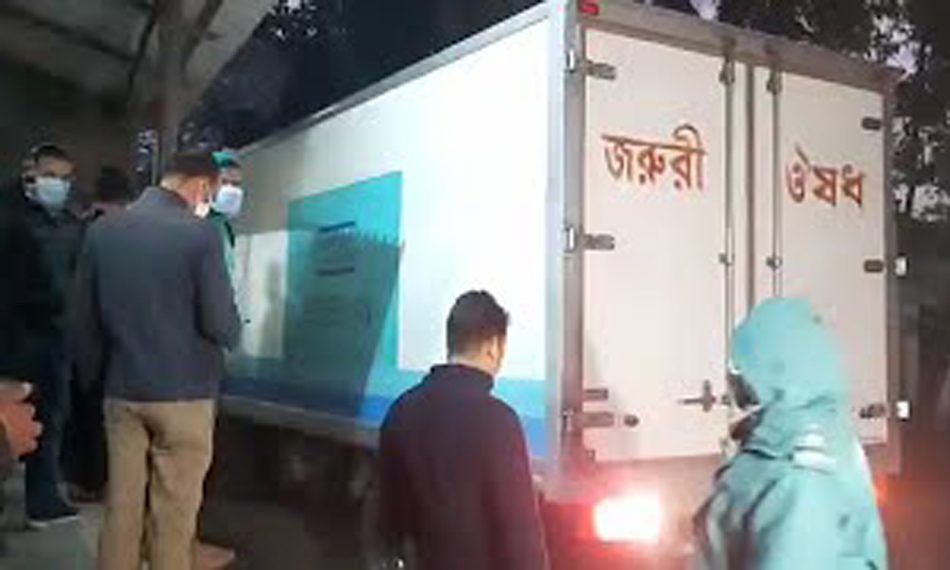 ফ্রিজারভ্যানযোগে ভ্যাকসিনগুলো এসে পৌঁছায়। এসময় সিভিল