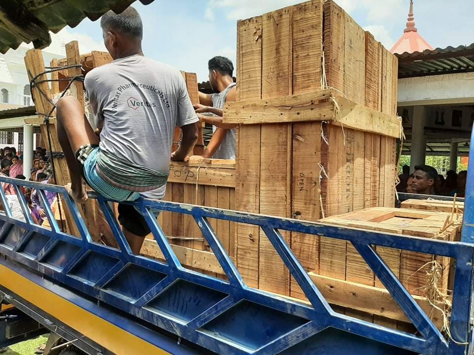 ভারত থেকে আসলো ট্রাক ভর্তি প্রতিমা, করোনার ঝুঁকিতে মোংলা বন্দর