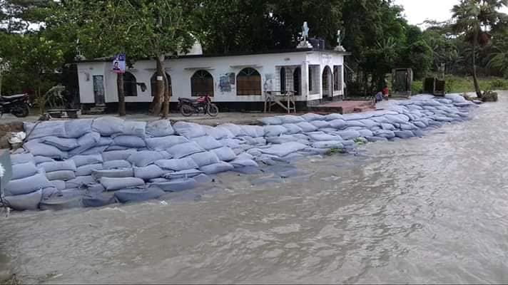 নদীর পানি বৃদ্ধি এবং প্রবল চাপের কারনে প্রতিনিয়ত নতুন নতুন এলাকা নদী গর্ভে বিলীন হয়ে যাচ্ছে। ঘূর্নিঝড় আ¤ফান’র আঘাতের পর থেকেই অত্র ইউনিয়নের পূর্ব আলীপুর, পশ্চিম আলীপুর, চানপুরা, খলিশাখালী বিভিন্ন এলাকায় নদীর ভাঙনের মাত্রা তীব্র আকার ধারন করেছে। ভাঙন কবলিত এলাকার শত শত পরিবারের আবাদি-অনাবাদি জমি, বসতভিটা নদী গর্ভে হারিয়ে যাচ্ছে। উপজেলার একমাত্র ২টি লঞ্চঘাট বাঁশবাড়িয়া এবং হাজীরহাট নদী গর্ভে বিলীন হয়ে গেছে। নদীর ভাঙন ঠেকাতে কোন উদ্যোগ নেয়া হচ্ছে না। অত্র উপজেলায় নদীর ভাঙন ঠেকাতে কোন পরিকল্পনা গ্রহন করা হয়নি। স্বাধীনতার ৪৯ বছর পেরিয়ে গেলেও নদীর তীর ও সংলগ্ন এলাকা রক্ষার জন্য কোন পদক্ষেপ গ্রহন করা হচ্ছে না। উপজেলার বাঁশবাড়িয়া ও হাজীরহাট লঞ্চঘাটের উত্তর পাশের অংশে অচিরেই বেড়িবাঁধ নির্মান করা না হলে চরম হুমকির মুখে পড়বে নদী তীরবর্তী এলাকা। উপজেলার হাজার হাজার মানুষের অনাগত ভবিষ্যতের কথা বিবেচনা করে দ্রæত পদক্ষেপ গ্রহন করা প্রয়োজন।