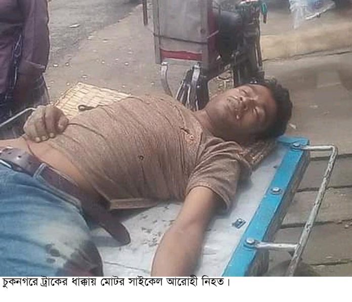 ভ্রাম্যমান প্রতিনিধি,চুকনগর ঃ খুলনার চুকনগরে ট্রাকের ধাক্কায় এক মোটরসাইকেল আরোহী নিহত হয়েছে। গতকাল বেলা সাড়ে ১১টার দিকে চুকনগর-খুলনা মহাসড়কের চুকনগর নন্দী বাড়ির সামনে এই মর্মান্তিক দূর্ঘটনাটি ঘটে।