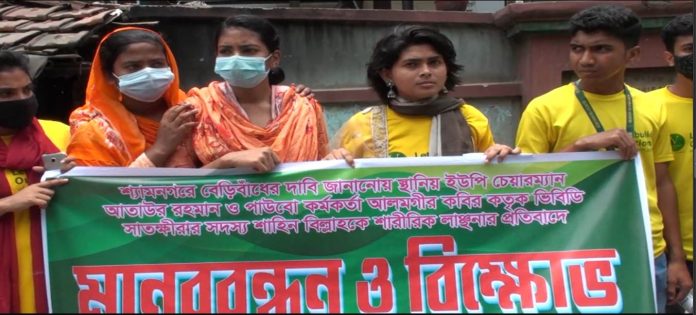 সাতক্ষীরা প্রতিনিধি ঃ উপকুলীয় জলবায়ু যোদ্ধাদের শারীরিকভাবে লাঞ্চনার প্রতিবাদে ও এ ঘটনায় জড়িত স্থানীয় ইউপি চেয়ারম্যান আতাউর রহমান ও পাউবো কর্মকর্তা আলমগীর কবিরের বিচারের দাবিতে মানববন্ধন ও বিক্ষোভ সমাবেশ অনুষ্ঠিত হয়েছে।