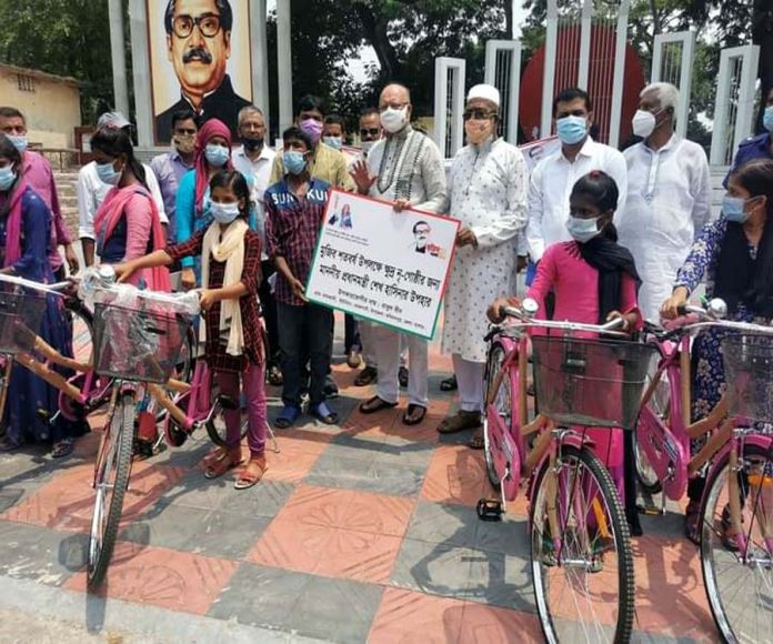 মোঃ মেহেদী হাসান, মণিরামপুর : মুজিব শতবর্ষ উপলে মণিরামপুওে ক্ষুদ্র নৃ-গোষ্ঠী ২০ পরিবারের মাঝে ঘর বিতরণ করা হয়েছে। একই সাথে ১৭৬ জন নৃ-গোষ্ঠী শিার্থীর মাঝে চার লাখ টাকা শিাবৃত্তি ও ১০ ছাত্রীর মাঝে সাইকেল বিতরণ করা হয়েছে। পল্লী উন্নয়ন ও সমবায় প্রতিমন্ত্রী স্বপন ভট্টাচার্য শনিবার (২৯মে) দুপুর ১২টায় উপজেলা পরিষদ চত্বরে আয়োজিত অনুষ্ঠানে প্রধান অতিথি হিসেবে উপস্থিত থেকে এই ঘর, টাকা ও সাইকেল বিতরণ করেন। পৌর মেয়র কাজী মাহমুদুল হাসান, উপজেলা নির্বাহ কর্মকর্তা সৈয়দ জাকির হাসান, সহকারী কমিশনার (ভ’মি) পলাশ দেবনাথ, থানার ইন্সপেক্টর (তদন্ত) শিকদার মতিয়ার রহমান প্রমুখ এসময় উপস্থিত ছিলেন। মণিরামপুর এসিল্যান্ড অফিসের অফিস সহকারী ফাহিম আল মোমিন বলেন, মুজিব শতবর্ষ উপলে প্রধানমন্ত্রীর উপহার হিসেবে উপজেলার ঢাকুরিয়া, মশ্মিমনগর, শ্যামকুড়, দূর্বাডাঙা, কুলটিয়া, মনোহরপুর ও পৌর এলাকাসহ বিভিন্ন এলাকায় ২০ জন ক্ষুদ্র নৃ-গোষ্ঠীকে ঘর দেওয়া হয়েছে। প্রতিঘরে ব্যয় হয়েছে এক লাখ ৭১ হাজার টাকা। এছাড়া প্রধানমন্ত্রীর দপ্তর থেকে বরাদ্দ আসা চার লাখ টাকা ১৭৬ জন শিার্থীর মাঝে বিতরণ করা হয়েছে। যারমধ্যে প্রাথমিক স্তরের ৯১ জন এক হাজার ২০০ টাকা, মাধ্যমিক স্তরের ৬৫ জন তিন হাজার টাকা ও উচ্চমাধ্যমিক স্তরের ২০ জন চার হাজার ৮০০ টাকা করে পেয়েছেন। একইসাথে প্রধানমন্ত্রীর উপহার হিসেবে নৃ-গোষ্ঠী ১০ ছাত্রীর হাতে সাইকেল তুলে দিয়েছেন প্রতিমন্ত্রী।