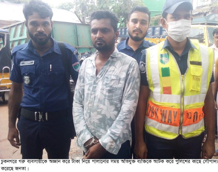 ভ্রাম্যমান প্রতিনিধি,চুকনগর : চুকনগরে গরু ব্যবসায়ীকে অজ্ঞান করে টাকা নিয়ে পালানোর সময় এক অজ্ঞান পার্টির সদস্যকে আটক করেছে জনতা। সোমবার বিকাল সাড়ে ৩টার দিকে টাকা নিয়ে বাস থেকে নেমে দৌঁড়ে পালানোর সময় তাকে আটক করে জনতা। পরে জনতার রোষানল থেকে বাঁচানোর জন্য খর্ণিয়া হাইওয়ে থানা পুলিশের কাছে তাকে হস্তান্তর করা হয়।