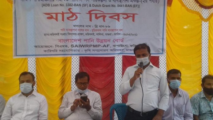 শালিখা (মাগুরা) প্রতিনিধিঃ মাগুরার শালিখায় দক্ষিণ-পশ্চিমাঞ্চলীয় সমন্বিত পানি সম্পদ পরিকল্পনা ও ব্যবস্থাপনা প্রকল্পের (২য় পর্যায়) ব্রি ধান- ৮৯ এর প্রদর্শনীর মাঠ দিবস অনুষ্ঠিত হয়েছে। গতকাল বিকালে পি এম ও SAIWRP-AF বাপাউবো ফরিদপুরের আয়োজনে এবং মাগুরা কৃষি সম্প্রসারণ অধিদপ্তরের সহযোগিতায় দরিশলই সরকারি প্রাথমিক বিদ্যালয় প্রাঙ্গণে বুড়ির খাল পানি ব্যবস্থাপনা দলের সভাপতি মোঃ আখতারুজ্জামান’র সভাপতিত্বে প্রধান অতিথি হিসেবে উপস্থিত ছিলেন সুশান্ত কুমার প্রামানিক উপ-পরিচালক কৃষি সম্প্রসারণ অধিদপ্তর মাগুরা।আতিকুল ইসলাম অতিরিক্ত উপ-পরিচালক (শস্য) কৃষি সম্প্রসারণ অধিদপ্তর মাগুরা। শালিখা উপজেলা কৃষি কর্মকর্তা আলমগীর হোসেন।সঞ্জয় হালদার সহকারী উদ্ভিদ সংরক্ষণ অফিসার শালিখা, মাগুরা। বুড়ির খাল পানি ব্যবস্থাপনা দলের সাধারণ সম্পাদক মোঃ সাইফুল ইসলাম, আড়পাড়া ইউনিয়ন পরিষদের সদস্য সুভাষ কুমার দাস।বুড়ির খাল পানি ব্যবস্থাপনা দলের সদস্য মোঃ আসাদুজ্জামান অনুকুল বিশ্বাস সহ প্রমুখ। অনুষ্ঠানটি সার্বিকভাবে পরিচালনা করেন বুড়ির খাল পানি ব্যবস্থাপনা কমিটির কমিউনিটি ফ্যাসিলিটেটর মোঃ মেহেদী হাসান।এসময় প্রধান অতিথি বলেন ব্রি ধান ৮৯ প্রতি শতকে প্রায় এক মণ ধান উৎপন্ন হয় ব্রি ধান -৮৯ অন্যান্য ধানের চেয়ে বেশি ফলন হয় বলে ব্রিধান-৮৯ কে গরিবের বন্ধু বলা হয়। আগামী মৌসুমে ব্রি ধান -৮৯ চাষ করার জন্য কৃষকের মধ্যে আগ্রহ লক্ষ্য করা গেছে, এ পর্যন্ত ধানের যতগুলো জাত আছে তার মধ্যে ব্রি ধান-৮৯ একটি উচ্চ ফলনশীল আলোচিত জাত।