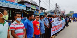 দেশব্যাপী সাম্প্রদায়িক সহিংসতার বিরুদ্ধে যশোরে নাগরিক সমাজের মানববন্ধন