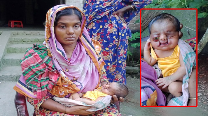 চোখ, নাক, মুখ সহ গোটা দেহটি অদ্ভুত প্রকৃতির হওয়ায় শিশুটিকে বাঁচাতে উন্নত চিকিৎসার জন্য মানবিক সাহায্য সহযোগিতার আবেদন করেছেন শিশুটির বাবা মা।