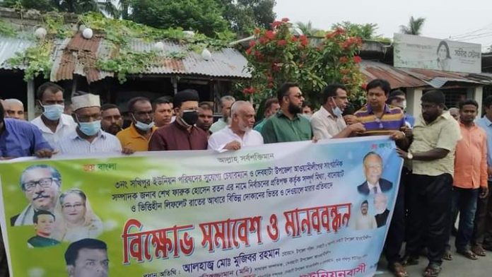 দেবহাটায় চেয়ারম্যানের বিরুদ্ধে লিফলেট ছড়ানোর প্রতিবাদে মানববন্ধন ও বিক্ষোভ সমাবেশ