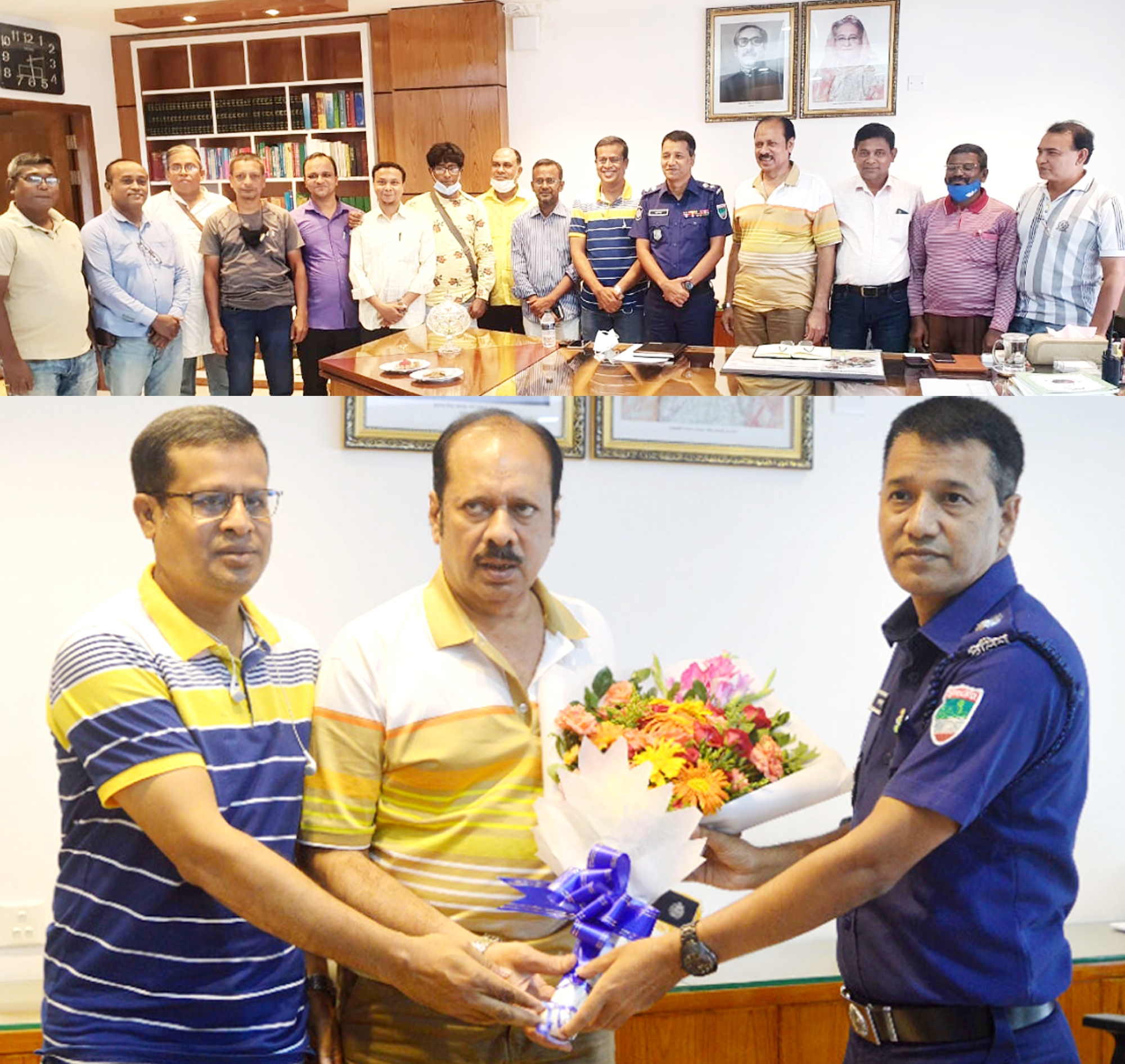 স্টাফ রিপোর্টার : প্রেস কাব যশোরের নব নির্বাচিত সভাপতি জাহিদ হাসান টুকুন ও সম্পাদক এস এম তৌহিদুর রহমানসহ নির্বাহী কমিটির সকল সদস্যকে সম্বর্ধনা প্রদান করেছেন যশোরের পুলিশ সুপার প্রলয় কুমার জোয়ারদার। গতকাল পুলিশ সুপারের কার্যালয়ে নব নির্বাচিত সভাপতি সম্পাদকের হাতে ফুলের তোড়া তুলে দিয়ে সম্বর্ধনা জানান পুলিশ সুপার। এসময় সেখানে প্রেস কাব যশোরের সহ সভাপতি ওয়াহাবুজ্জামান ঝন্টু, নূর ইসলাম, যুগ্ম সম্পাদক সরোয়ার হোসেন, হাবিবুর রহমান মিলন, কোষাধ্যক্ষ হাবিবুর রহমান রিপন, ক্রীড়া সাহিত্য ও সমাজসেবা সম্পাদক তহীদ মনি, দপ্তর সম্পাদক তৌহিদ জামান, নির্বাহী কমিটির সদস্য শহিদ জয়, জাহিদুল কবির মিল্টন, কাজী আশরাফুল আজাদ, সাজেদ রহমান বকুল ও ফিরোজ গাজী । এছাড়া যশোরের অতিরিক্ত পুলিশ সুপার ডিএসবি জাহাঙ্গীর হোসেন ও ডিবির ওসি রূপম কুমার সরকার সম্বর্ধনা অনুষ্ঠানে উপস্থিত ছিলেন।