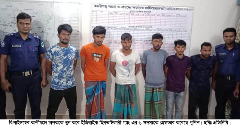 মিশন আলী স্টাফ রিপোটার,কালীগঞ্জ (ঝিনাইদহ): ঝিনাইদহে কালীগঞ্জে চালককে খুন করে ইজিবাইক ছিনতাইকারী গ্যাং এর ৬ সদস্যকে গ্রেফতার করেছে পুলিশ।