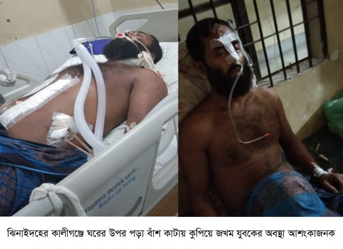 স্টাফ রিপোটার,কালীগঞ্জ (ঝিনাইদহ) : ঝিনাইদহের কালীগঞ্জে ঘরের উপর পড়া ঝাড়ের বাঁশ কাটায় আল ইসলাম (৩৫) নামে একজনকে কুপিয়ে জখম করেছে প্রতিবেশিরা। মুমুর্ষ আল ইসলাম এখন খুলনার একটি হাসপাতালের আইসিইউতে চিকিৎসাধীন রয়েছেন। তার অবস্থা আশংকাজনক বলে জানা গেছে।