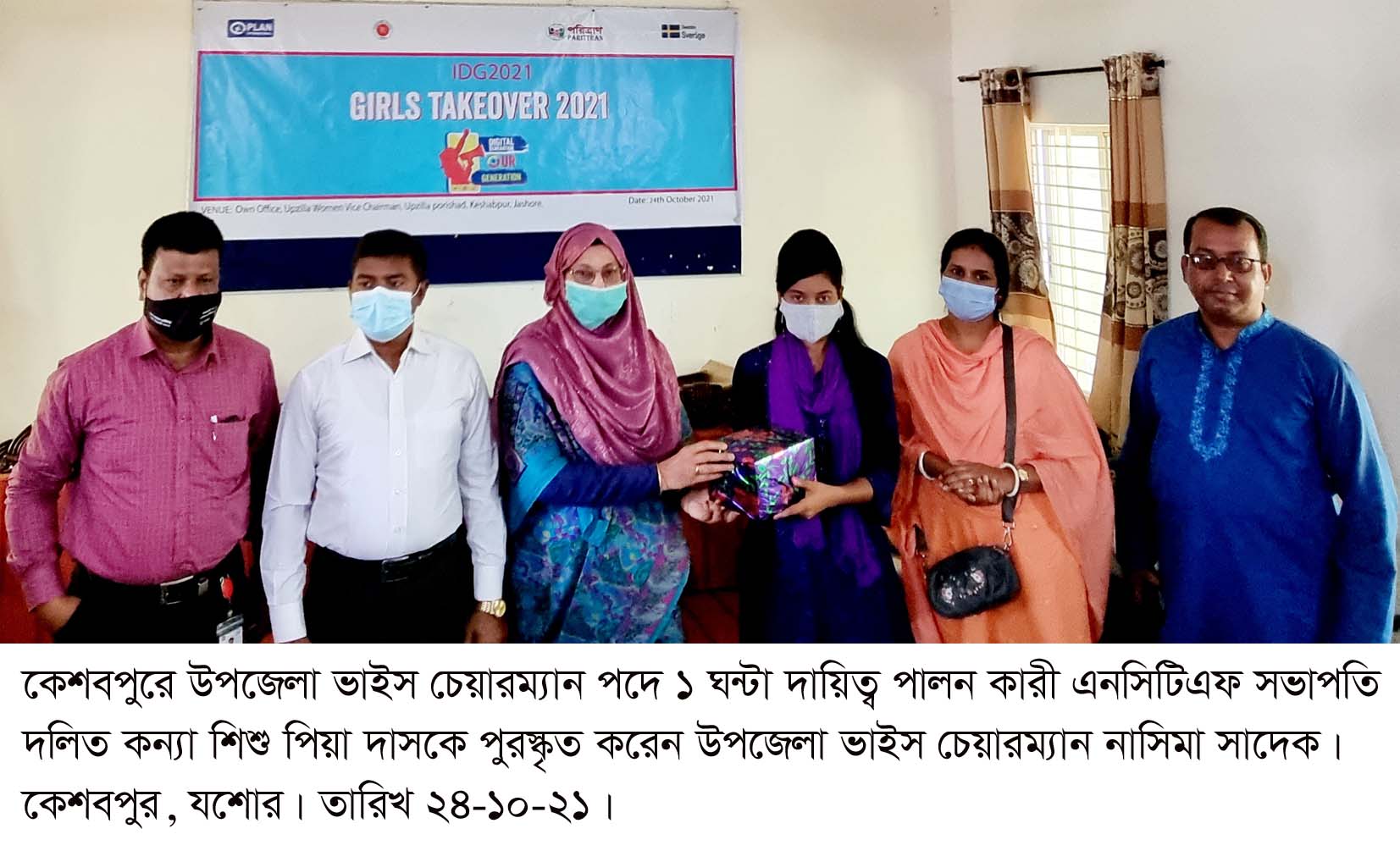কেশবপুরে উপজেলা ভাইস চেয়ারম্যান পদে ১ ঘন্টা দায়িত্ব পালন করলেন এনসিটিএফ সভাপতি দলিত কন্যা শিশু পিয়া দাস