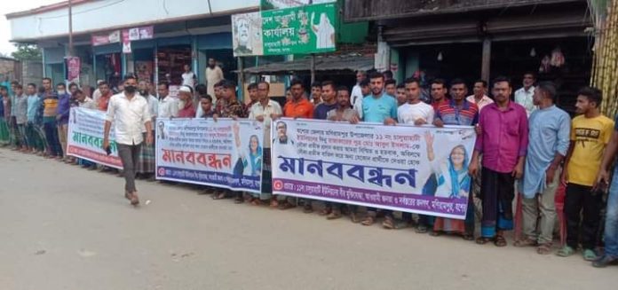 মণিরামপুর ইউপি নির্বাচনে নৌকার প্রার্থীর বিরুদ্ধে বিদ্রোহী প্রার্থীর সমর্থকদের সমাবশে-মানববন্ধন