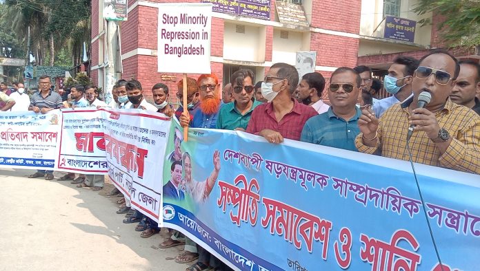 বক্তারা বলেন, দেশব্যাপী ষড়যন্ত্রমূলক সাম্প্রদায়িক সন্ত্রাস ও সহিংসতার তীব্র নিন্দা ও প্রতিবাদ জানান এবং এ ধরনের ন্যাক্কারজনক ঘটনার সাথে জড়িতদের অবিলম্বে গ্রেফতার করে দ্রুত বিচার ট্রাইব্যুনাল মাধ্যমে বিচারের দাবি জানান।