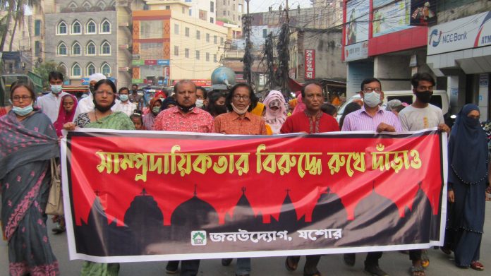 জনউদ্যোগ যশোর এর আয়োজনে সাম্প্রদায়িক হামলা ও বর্বরতার বিরুদ্ধে মানববন্ধন