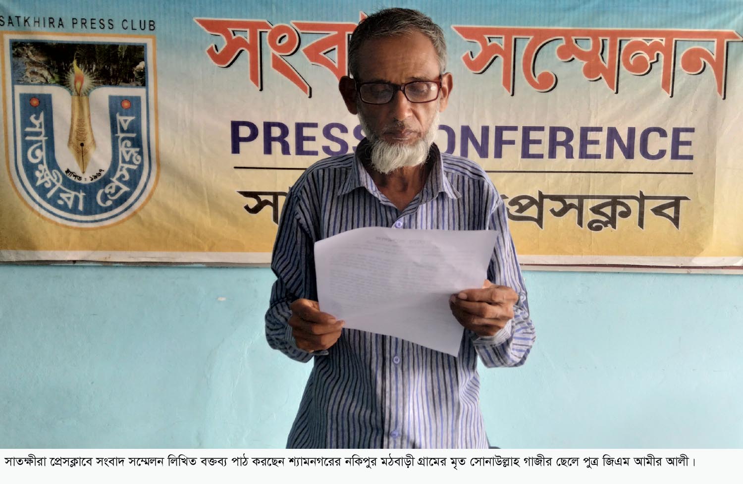 সেলিম রেজা মুকুল সাতক্ষীরা ব্যুরো প্রধান ঃ সাতক্ষীরার শ্যামনগরে আদালতের নিষেধাজ্ঞা উপেক্ষা করে জমি দখলের উদ্দেশ্যে কৌশলে নাম পত্তন চেষ্টার প্রতিবাদে সংবাদ সম্মেলন অনুষ্ঠিত হয়েছে। সোমবার দুপুরে সাতক্ষীরা প্রেসকাবের আব্দুল মোতালেব মিলনায়তনে উক্ত সংবাদ সম্মেলন আয়োজন করেন, উপজেলার নকিপুর মঠবাড়ী গ্রামের মৃত সোনাউল্লাহ গাজীর ছেলে পুত্র জিএম আমীর আলী।