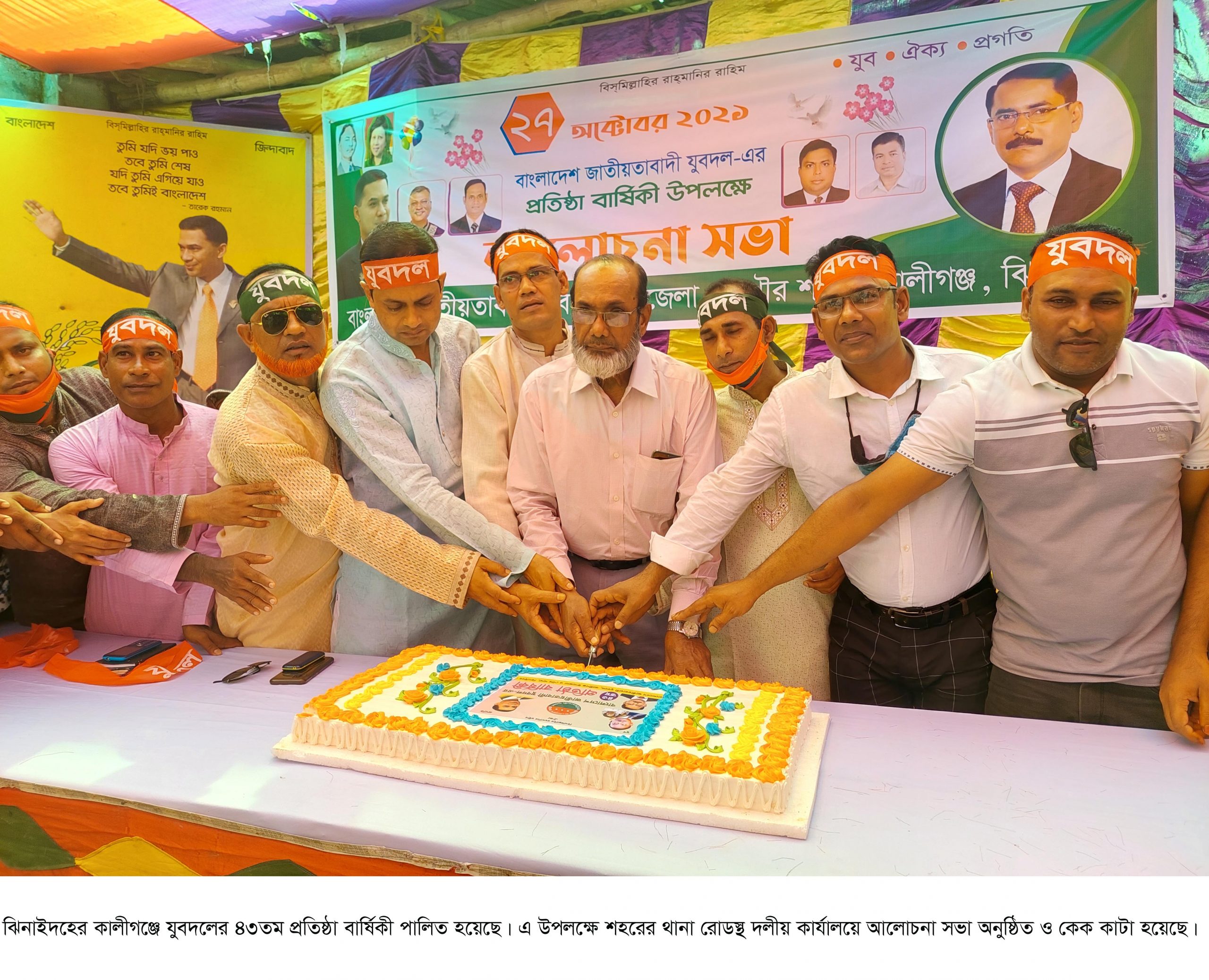 কালীগঞ্জ (ঝিনাইদহ) প্রতিনিধি: ঝিনাইদহের কালীগঞ্জে যুবদলের ৪৩তম প্রতিষ্ঠা বার্ষিকী পালিত হয়েছে। বুধবার সকালে কেন্দ্রীয় স্বেচ্ছাসেবক দলের সিনিয়র যুগ্ম আহবায়ক সাইফুল ইসলাম ফিরোজের নির্দেশনায় প্রতিষ্ঠা বার্ষিকী উপলক্ষে শহরের থানা রোডস্থ দলীয় কার্যালয়ে আলোচনা সভা অনুষ্ঠিত ও কেক কাটা হয়েছে।