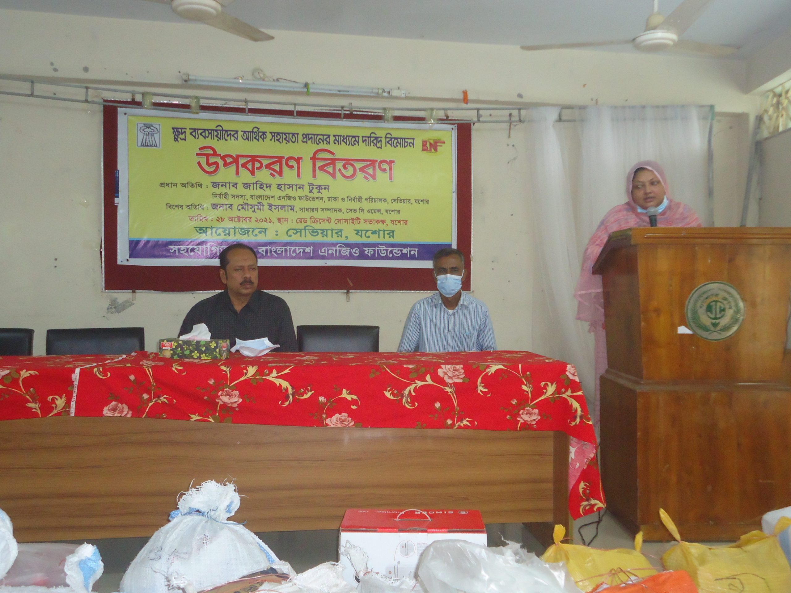 বাংলাদেশ এনজিও ফাউন্ডেশন এর আর্থিক সহযোগিতায় সেভিয়ার সংস্থা যশোর অঞ্চলের হত দরিদ্্র জনগোষ্ঠির জীবনমান উন্নয়নে দীর্ঘদিন যাবত কাজ করে যাচ্ছে। এরই ধারাবাহিকতায় সেভিয়ার সংস্থাকে করোনা মাহামারির কারনে ক্ষতিগ্রস্থ ক্ষুদ্র ব্যবসায়িদের আর্থিক সহোগোগিতা প্রদান প্রকল্পের আওতায় বাংলাদেশ এনজিও ফাউন্ডেশন বিশেষ বরাদ্দ ২০২০-২০২১ প্রদান করে। সেভিয়ার দ্বিতীয় পর্যায়ে যশোর পৌরসভার মধ্যে ৫জন নারী ও ১৯জন পুরুষসহ মোট ২৪জন করোনায় ক্ষতিগ্রস্থ ক্ষুদ্র ব্যবসায়ী বাচাই করে যাহারা চা ব্যবসা, মুদি ব্যবসা, পিয়াজু বেগুনি ব্যবসা, হোটেল ব্যবসা, মাছ ব্যবসা, শরবত ব্যবসা হস্তশিল্প ব্যবসা, স্টেশনারী ব্যবসার ইত্যাদির সাথে জড়িত। উক্ত দরিদ্র ও হতদরিদ্র উপকারভোগীদের মাঝে উপকরণ বিতরনের জন্য ২৮অক্টোবর, ২১ বৃহস্পতিবার বেলা ১২ঘটিকায় রেড ক্রিসেন্ট সভা কক্ষে অনুষ্ঠানের আয়োজন করে। উক্ত অনুষ্ঠানের প্রধান অতিথি হিসাবে উপস্থিত ছিলেন জাহিদ হাসান টুকুন, নির্বাহী সদস্য, বাংলাদেশ এনজিও ফাউন্ডেশন ও নির্বাহী পরিচালক, সেভিয়ার, বিশেষ অতিথি ছিলেন মৌসুমী ইসলাম, সাধারন সম্পাদক, সেভ দি ওমেন্স, যশোর। অনুষ্ঠানটি সঞ্চালনা করেন শাহাজাহান নান্নু, সমাজ কর্মী, যশোর। এখানে উল্লেখ্য বিশেষ বরাদ্দ-২০২০-২০২১ এর প্রথম পর্যায়ে গত ১৯জুন শনিবার বেলা ১২ঘটিকায় রেড ক্রিসেন্ট সভা কক্ষে ৯জন মহিলা ও ১৪জন পুরুষসহ মোট ২৩জন ক্ষুদ্র ব্যবসায়ীদের মাঝে উপকরণ প্রদান করা হয়।