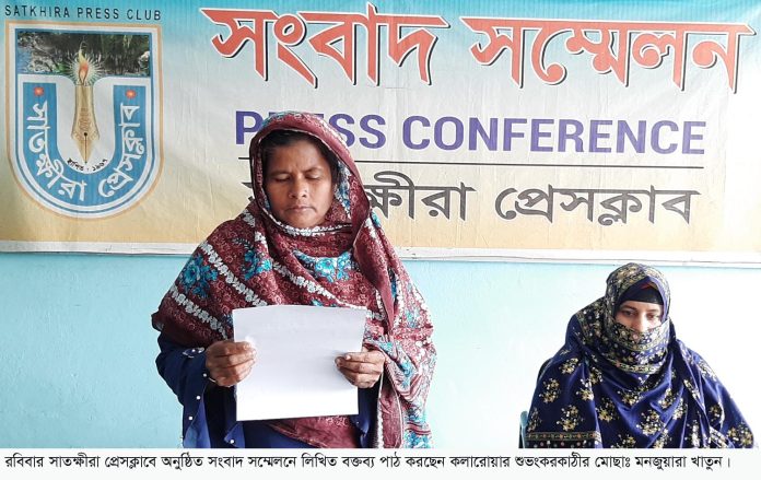 সেলিম রেজা মুকুল সাতক্ষীরা ব্যুরো প্রধান ঃ সাতক্ষীরার কলারোয়ায় ছোট বোন পরুল খাতুন কর্তৃক প্রবাসী সেজো বোনের ছেলেকে মাদকাসক্তসহ নানা মিথ্যা অভিযোগ তুলে সাংবাদিদের ভুল বুঝিয়ে সংবাদ প্রকাশের প্রতিবাদে সংবাদ সম্মেলন করেছে আপন বড় দুই বোন। রোববার দুপুরে সাতক্ষীরা প্রেসকাবের আব্দুল মোতালেব মিলনায়তনে উক্ত সংবাদ সম্মেলনের আয়োজন করেন, উপজেলার শুভংকরকাঠী গ্রামের মনজুয়ারা খাতুন ও ফারজানা খাতুন। সংবাদ সম্মেলনে দুই বোনের পক্ষে লিখিত বক্তব্য পাঠ করেন, মনজুয়ারা খাতুন।