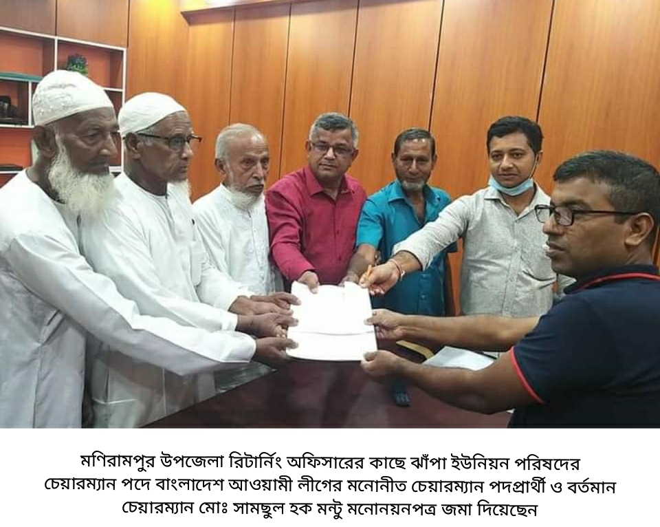 রাজগঞ্জ প্রতিনিধি : ইউনিয়ন পরিষদ নির্বাচনকে সামনে রেখে মণিরামপুর উপজেলা রিটার্নিং অফিসারের কাছে ৯ নম্বর ঝাঁপা ইউনিয়ন পরিষদের চেয়ারম্যান পদে বাংলাদেশ আওয়ামী লীগের মনোনীত চেয়ারম্যান পদপ্রার্থী ও বর্তমান চেয়ারম্যান মোঃ সামছুল হক মন্টু মনোনয়নপত্র জমা দিয়েছেন। রবিবার (৩১ অক্টোবর-২০২১) বিকালে চেয়ারম্যান মোঃ সামছুল হক মন্টু দলীয় নেতাকর্মীদের সাথে নিয়ে মনোনয়নপত্র জমা দেন। এ সময় ইউনিয়ন আওয়ামী লীগের সভাপতি অবসরপ্রাপ্ত শিক মোঃ আকবার হোসেন, সাধারণ সম্পাদক বীর মুক্তিযোদ্ধা এসএম কওছার আহমেদ, বীর মুক্তিযোদ্ধা মোঃ আব্দুস সামাদ, অবসরপ্রাপ্ত কৃষি কর্মকর্তা ও সমাজসেবক মোঃ আঃ জব্বার সহ ইউনিয়ন আওয়ামী লীগ, যুবলীগ ও ছাত্রলীগের নেতাকর্মীবৃন্দ উপস্থিত ছিলেন। উল্লেখ্য- আগামি ২৮ নভেম্বর-২০২১, ইউনিয়ন পরিষদ নির্বাচনের তৃতীয় ধাপে যশোর জেলার মণিরামপুর উপজেলার ১৬ টি ইউনিয়নে একযোগে ভোটগ্রহণ অনুষ্ঠিত হবে।