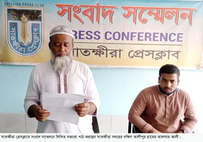 সাতক্ষীরায় বালু ফেলে দোকান বন্ধের প্রতিবাদে সংবাদ সম্মেলন