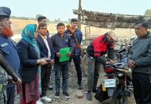নাসির আহমেদ,দশমিনা (পটুয়াখালী) : পটুয়াখালীর দশমিনা উপজেলায় পরিবেশবান্ধব মালচিং পদ্ধতি ব্যবহার করে অসময়ে তরমুজ উৎপাদনে কৃষকরা অসাধারণ সাফল্য দেখিয়েছে। উপজেলার সদর ইউনিয়নের লীপুর গ্রামের রিপন মন্ডল এই সফলতা অর্জন করেছে। কৃষক রিপন ৮শত চারা ৪০ শতাংশ জমিতে মালচিং পদ্ধতিতে চাষ করেছেন। সব মিলিয়ে ২০ হাজার টাকা খরচ হলেও ইতিমধ্যে ৪শ তরমুজ ২০ হাজার টাকায় বিক্রি করেছেন। সাধারণত এ পদ্ধতিতে তরমুজের ফলন বছরে একবার হয়ে থাকে। কিন্তু রিপন বাস্তবে দেখিয়েছেন যে, বছরের যে কোনও সময় একাধিকবার তরমুজ উৎপাদন করা যায়। দেশীয় বীজ দিয়ে বছরে তিনবার তরমুজের আবাদ করতে পারবেন। এতে তিনি বারো মাস তরমুজ বাজারে সরবরাহ করতে পারবেন বলে তিনি আশা করেন। রিপনের সফলতায় নিজস্ব জাতের লাল ও হলুদ তরমুজ চাষে আশপাশের গ্রামের কৃষকেরা বারি-১ ও বারি-২ জাতের তরমুজ চাষে আগ্রহ দেখাচ্ছেন। সংশ্লিষ্ট সূত্র জানায়, মালচিং মেথড’ ভারত ও ইসরাইলে খুবই জনপ্রিয় একটি পদ্ধতি। স্থানীয় কৃষি বিভাগ এই পদ্ধতিতে তরমুজ উৎপাদনে রিপনকে উৎসাহিত করে। প্রচলিত পদ্ধতিতে তরমুজের বীজ সরাসরি জমিতে লাগানো হয়। কিন্তু মালচিং মেথড অনুযায়ী মালচিং পেপারে মুড়িয়ে অঙ্কুরিত বীজ জমিতে রোপন করা হয়। এ পদ্ধতিতে প্রথমে মালচিং পলিথিন দিয়ে একটি বীজতলা নির্মাণ করা হয়। এরপর তরমুজের বীজ সেখানে স্থাপন করা হয়। এবার মালচিং পেপার ছিদ্র করে বীজ অঙ্কুরিত হওয়ার পর, তা মাচায় প্রতিস্থাপন করা হয়। যেহেতু বীজগুলো পলিথিন দিয়ে মোড়ানো থাকে, তাই কোনও কীট-পতঙ্গ আক্রমণ করতে পারে না। ফলে কীটনাশক ব্যবহারেরও প্রয়োজন হয় না। একই কারণে তিকর সূর্যালোকও এর ভেতরে প্রবেশ করতে পারে না। সাধারণ পদ্ধতিতে অনেক সময় বৃষ্টি হলে বীজতলা বা তে থেকে সার ধুয়ে যায়। মালচিং পেপার দিয়ে মোড়ানো থাকায় এখানে সেই সম্ভাবনাও নেই। সাধারণ পদ্ধতির চেয়ে নতুন এই পদ্ধতিতে গাছগুলো দেড়গুণ তাড়াতাড়ি বেড়ে ওঠে বলে জানা যায়। রিপনকে অনুসরন করে অসময়ের তরমুজ চাষে ঝুঁকছেন কৃষকেরা।