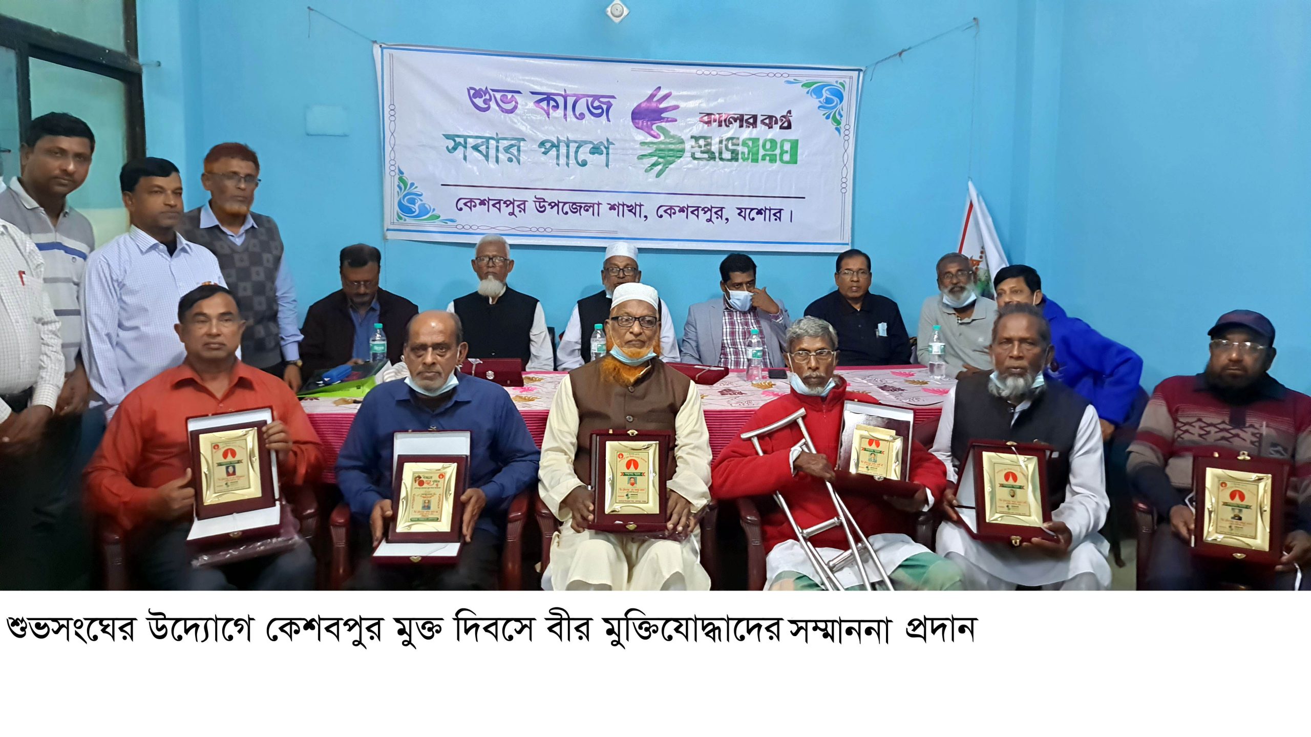 এহসানুল হোসেন তাইফুর, বিশেষ প্রতিনিধি : কেশবপুর মুক্ত দিবস উপলে মঙ্গলবার দুপুরে শুভসংঘের উদ্যোগে বীর মুক্তিযোদ্ধাদের সম্মাননা প্রদান করা হয়েছে। শুভসংঘের সভাপতি খন্দকার শফির সভাপতিত্বে মুক্তিযোদ্ধা সম্মাননা অনুষ্ঠানে প্রধান অতিথির বক্তৃতা করেন, উপজেলা পরিষদের চেয়ারম্যান যুদ্ধাহত বীর মুক্তিযোদ্ধা কাজী রফিকুল ইসলাম। প্রধান আলোচক ছিলেন, উপজেলা নির্বাহী অফিসার এম এম আরাফাত হোসেন। অন্যান্যের মধ্যে বক্তৃতা করেন, সাবেক মুক্তিযোদ্ধা কমান্ডার বীর মুক্তিযোদ্ধা মোহাম্মদ আলী, কেশবপুর প্রেসকাবের সভাপতি আশরাফ-উজ-জামান খান, সাধারণ স¤পাদক জয়দেব চক্রবর্ত্তী, শুভসংঘের উপদেষ্টা এনামুল হক কাজল, অসীম ঘোষ, সাধারণ স¤পাদক প্রবীর সরকার, জ্যেষ্ঠ সহ-সভাপতি বাসুদেব সেন গুপ্ত, সাহিত্য স¤পাদক মতিয়ার রহমান, কোষাধ্য নিখিল চন্দ্র দাস, মহিলা স¤পাদক হাসিনা খাতুন, নির্বাহী সদস্য আ.শ.ম এহসানুল হোসেন তাইফুর, উপজেলা সম্মিলিত সাংস্কৃতিক জোটের সাধারণ স¤পাদক উৎপল দে, আমরা সাজাবো কেশবপুরের সভাপতি কামরুজ্জামান রাজু ও কালের কণ্ঠের কেশবপুর প্রতিনিধি নূরুল ইসলাম খান। কেশবপুর প্রেসকাব হলরুমে যুদ্ধাহত বীর মুক্তিযোদ্ধা কাজী রফিকুল ইসলাম, সাবেক মুক্তিযোদ্ধা কমান্ডার বীর মুক্তিযোদ্ধা মোহাম্মদ আলী, বীর মুক্তিযোদ্ধা ফজলুর রহমান, বীর মুক্তিযোদ্ধা সামছুর রহমান, বীর মুক্তিযোদ্ধা এস এম তৌহিদুজ্জামান, বীর মুক্তিযোদ্ধা অসীত কুমার ভদ্র, বীর মুক্তিযোদ্ধা আমীর আলী খাঁ ও বীর মুক্তিযোদ্ধা আব্দুর রহমান ঢালীকে কেশবপুর মুক্ত দিবস উপলে শুভসংঘের প থেকে সম্মাননা স্মারক প্রদান করা হয়। সম্মাননা অনুষ্ঠানে যুদ্ধাহত বীর মুক্তিযোদ্ধা কাজী রফিকুল ইসলাম ও সাবেক বীর মুক্তিযোদ্ধা মোহাম্মদ আলী যুদ্ধকালীন সময়ের বিভিন্ন ঘটনা তুলে ধরে স্মৃতিচারণ করেন। উল্লেখ্য, ১৯৭১ সালের ৭ ডিসেম্বর কেশবপুর হানাদার মুক্ত হয়। এদিন মুক্তিযোদ্ধারা সম্মিলিতভাবে কেশবপুরে প্রবেশ করার আগমূহুর্তে রাজাকাররা কেশবপুর বালিকা বিদ্যালয় ক্যা¤প ছেড়ে পালিয়ে যায়।