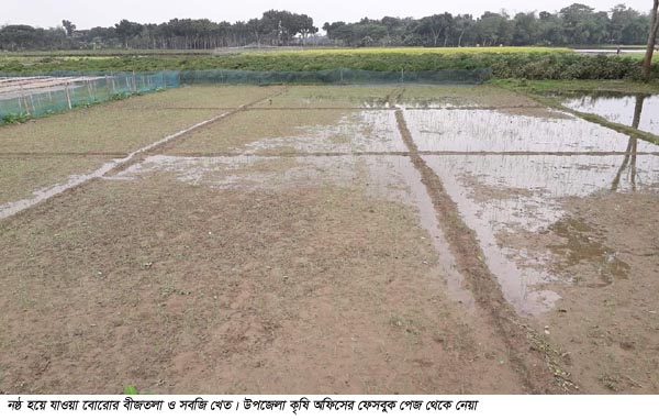 চৌগাছা (যশোর) প্রতিনিধি : টানা বর্ষণে যশোরের চৌগাছার চাষীদের ব্যাপক য়তি হয়েছে। উপজেলার প্রায় সাড়ে তিন হাজার হেক্টরের বিভিন্ন ধরনের ফসল নষ্ঠ হয়েছে বলে চাষীরা বলছেন। বোরোর বীজতলা, সরিষা, মসুর, গোলআলু, পেয়াজ, মরিচসহ সব ধরণের সবজি চাষীরা ব্যপক ক্ষতিগ্রস্থ হয়েছেন। এছাড়াও যেসব চাষী ধান ঘরে তুলতে পারেন নি তারাও পড়েছেন ব্যাপক য়তির মুখে। তবে এই বিপদের দিনে কৃষি কর্মকর্তারা মাঠে যাচ্ছেন না বলে অভিযোগ করেছেন কৃষকরা। উপজেলা কৃষি অফিসের তথ্য প্রদানকারী কর্মকর্তা উপ-সহকারী কৃষি কর্মকর্তা (এসএএও) রাশেদুল ইসলাম মুঠোফোনে বলেন এ পর্যন্ত তাদের হিসেবে ৩০ হেক্টর বোরো বীজতলা, ৪০৭ হেক্টর মসুর, ৬৭ হেক্টর গম, ৭৪৫ হেক্টর সরিষা, ৮২০ হেক্টর বিভিন্ন ধরনের সবজি, ১৭০ হেক্টর গোলআলু, ৮৭ হেক্টর পেয়াজ, ৬৫ হেক্টর মরিচ খেত টানা বর্ষণে নিমজ্জিত হয়েছে। এরমধ্যে ২০ হেক্টর বোরো বীজতলা, ১৪১ হেক্টর মসুর, ৩৪ হেক্টর গম, ৩০১ হেক্টর সরিষা, ৪৭৮ হেক্টর বিভিন্ন ধরনের সবজি, ৯০ হেক্টর গোলআলু, ৩৭ হেক্টর পেয়াজ, ২৩ হেক্টর মরিচ ক্ষেত সম্পূর্ণ নষ্ঠ হয়ে গেছে। তিনি জানান, তিনি পানি নিস্কাশন যত দ্রুত হবে বাকি ফসলের ক্ষতি ততটা কম হবে। পানি নিস্কাশ হতে দেরি হলে ক্ষতির পরিমান আরও বড়বে। তবে কৃষি অফিসের দেয়া তথ্য ক্ষতির সঠিক চিত্র নয় বলে দাবি করেছেন কৃষকরা। তারা বলছেন এখনও অনেকের আমন পাকা আমন ধান কেটে রাখা খেতের উপর দিয়ে পানির প্রবল স্রোত বইছে। অনেক জালি দিয়ে রাখা ধান পানিতে নিমজ্জিত। কৃষি কর্মকর্তারা তাদের ক্ষয়ক্ষতির হিসাবে আমন রাখেনই নি। তাছাড়া কৃষি কর্মকর্তারা এ কয়দিনে মাঠে না গিয়ে অফিসে বসেই হিসাব করেছেন বলে এই রিপোর্টে প্রকৃত চিত্র উঠে আসেনি। উপজেলার সিংহঝুলি গ্রামের শাহিনুর রহমান দফাদার বলেন, আমার দশ বিঘা ১৫ কাঠা জমিতে রোপা আমন ধান ছিলো। এর মধ্যে ৭ বিঘার ধান বাড়িতে নিতে পারলেও ৩ বিঘা ১৫ কাঠার ধান এখনও পানিতে নিমজ্জিমত। তিনি বলেন আমি কৃষি অফিসের অধীনে বীজধান তৈরিকারী কৃষক গ্রুপের একজন সদস্য। অথচ একয়দিনে কৃষি অফিস থেকে একজন কর্মকর্তাও মাঠে আসেন নি। বা মুঠো ফোনেও কোন খোঁজ নেননি। শুধুমাত্র সাংবাদিকরা আমার মাঠে এসেছেন। নিউজ করেছেন। একই গ্রামের আলমগীরের ১০ বিঘা ধানের মধ্যে ৭ বিঘাই ঘরে উঠাতে পারেন নি। তারও অভিযোগ কৃষি অফিসের কেউ এখন পর্যন্ত মাঠেই আসেন নি। অথচ তারা সাংবাদিকদের কাছে বলছেন রোপা আমনের কোন ক্ষতি হয়নি। পৌরসভার বেলেমাঠ গ্রামের আসগর আলী বলেন আমার দেড় বিঘা পেয়াজ এবং একবিঘা গোলআলু সম্পূর্ণ নষ্ঠ হয়ে গেছে। তবে কৃষি অফিসের কেউ এখন পর্যন্ত মাঠেও আসেননি বা খোঁজও নেননি বলে তিনি অভিযোগ করেন। একই গ্রামের হানেফ আলী বলেন আমার একবিঘা জমির মসুর নষ্ঠ হয়ে গেছে। তারও অভিযোগ কৃষ
