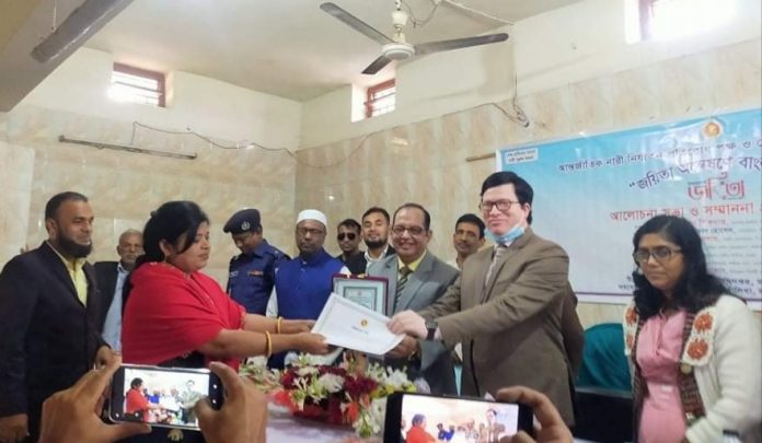 শালিখা (মাগুরা) প্রতিনিধি : শেখ হাসিনার বারতা নারী-পুরুষ সমতা এই প্রতিপাদ্যকে সামনে রেখে “জয়িতা অন্বেষণে বাংলাদেশ এই স্লোগানে মাগুরার শালিখায় আন্তর্জাতিক নারী নির্যাতন প্রতিরোধ প ও বেগম রোকেয়া দিবস উপলে আলোচনা সভা ও সম্মাননা প্রদান অনুষ্ঠান অনুষ্ঠিত হয়েছে। আজ বৃহস্পতিবার সকাল ১১ টায় উপজেলা পরিষদ মিলনায়তন কে উপজেলা মহিলা বিষয়ক অধিদপ্তরের আয়োজনে ও উপজেলা প্রশাসনের সার্বিক সহযোগিতায় অনুষ্ঠিত এ সভায় উপজেলা নির্বাহী কর্মকর্তা তারিফ-উল হাসান এর সভাপতিত্বে প্রধান অতিথি ছিলেন মাগুরা-২ আসনের সংসদ সদস্য ড. শ্রী বীরেন শিকদার। বিশেষ অতিথি ছিলেন উপজেলা পরিষদের চেয়ারম্যান এ্যাড: কামাল হোসেন, উপজেলা সহকারী কমিশনার ভূমি তিথি মিত্র, শালিখা থানা অফিসার ইনচার্জ (ওসি) তারক বিশ্বাস, উপজেলা মুক্তিযোদ্ধা কমান্ডার আবু বকর মাস্টার, উপজেলা পরিষদের ভাইস চেয়ারম্যান রেজাউল ইসলাম, উপজেলা পরিষদের মহিলা ভাইস চেয়ারম্যান জেসমিন আক্তার শাবানা, উপজেলা মহিলা বিষয়ক কর্মকর্তা নারগিস আক্তার প্রমুখ। এ সময় শিা েেত্র সাফল্য অর্জনকারী নারী মমতা রানী মজুমদার, সফল জননী নারী পারুল পারভীন এবং সমাজ উন্নয়নে অসামান্য অবদান রাখায় উপজেলা পরিষদের মহিলা ভাইস চেয়ারম্যান জেসমিন আক্তার শাবানাসহ তিন জয়িতাকে সম্মাননা প্রদান করা হয়।