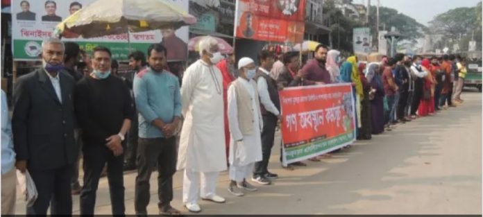 পণ্যের উর্দ্ধগতি ও পরিবহনে ভাড়া বৃদ্ধির প্রতিবাদে ঝিনাইদহে গণঅবস্থান কর্মসূচী পালিত