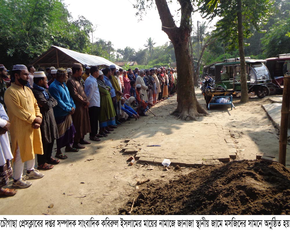 চৌগাছা (যশোর) প্রতিনিধি ॥ যশোরের চৌগাছা প্রেসকাবের দপ্তর সম্পাদক সাংবাদিক কবিরুল ইসলামের মাতা জাহানারা বেগম (৭৮) ইন্তেকাল করেছেন। ইন্নালিল্লাহি ওয়াইন্ন ইলাহির রাজিউন। রবিবার দিবাগত রাতে বার্ধক্যজানিত কারনে উপজেলার কয়ারপাড়া গ্রামে নিজ বাড়িতে তিনি মারা যান। মৃত্যুকালে ৩ ছেলে ও ৩ মেয়েসহ অসংখ্য গুনাগ্রাহী রেখে গেছেন। এদিন বাদ যোহর গ্রামের ঈদগাহপাড়া জামে মসজিদের সামনে নামাজে জানাজা অনুষ্ঠিত হয়। জানাজায় চৌগাছা সদর ইউপি চেয়ারম্যানসহ গন্যমান্য ব্যক্তিবর্গ উপস্থিত ছিলেন। জানাজা শেষে পারিবারিক কবরস্থানে দাফন সম্পন্ন হয়। সাংবাদিক কবিরুল ইসলামের মায়ের মৃত্যুতে চৌগাছা প্রেসকাব ও রিপোর্টার্স কাবের সাংবাদিক নেতৃবৃন্দ শোকাহত পরিবারের প্রতি গভীর শোক ও সমবেদনা জানিয়ে বিবৃতি দিয়েছেন। বিবৃতিদাতারা হলেন প্রেসকাবের সভাপতি আলমগীর মতিন চৌধুরী, সিনিয়র সহ-সভাপতি সহকারী অধ্যাপক ইয়াকুব আলী, সহ-সভাপতি শেখ ওয়ালিউর রহমান, সাধারণ সম্পাদক শাহানুর আলম উজ্জ্বল, যুগ্ম সম্পাদক মোঃ শাহিন, রিপোর্টার্স কাবের সভাপতি বাবলুর রহমান, সিনিয়র সহ-সভাপতি খলিলুর রহমান জুয়েল, সহ-সভাপতি এম হাসান মাহমুদ, সাধারণ সম্পাদক মুকুরুল ইসলাম মিন্টু, যুগ্ম সম্পাদক শামীম রেজা, সাংবাদিক শওকত আলী, সেঁেজুতি নূর, সুজন দেওয়ান, টিপু সুলতান প্রমুখ।