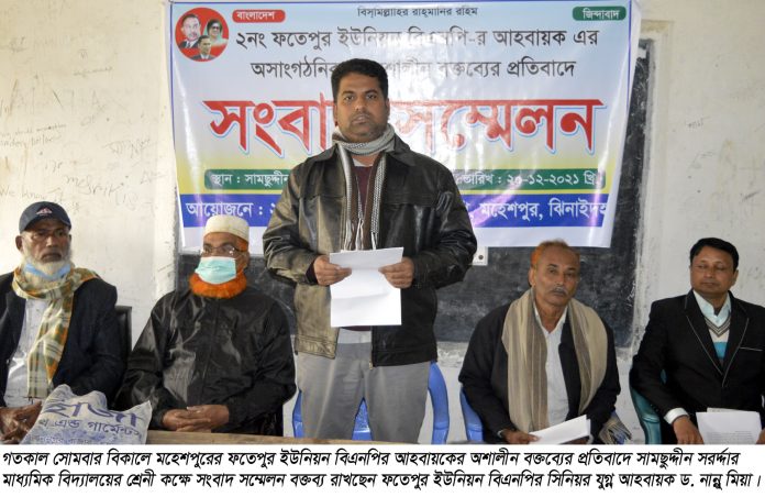 মহেশপুরের বিএনপি নেতা ফারুক খানের বক্তব্যের বিরুদ্ধে ইউনিয়ন বিএনপির সংবাদ সম্মেলন