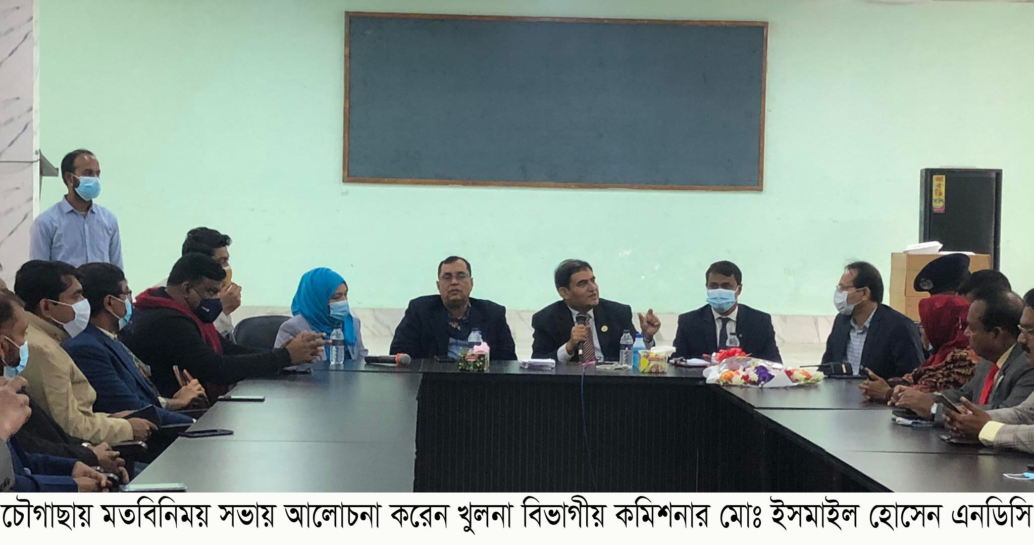 চৌগাছা প্রতিনিধি : খুলনা বিভাগীয় কমিশনার ইসমাইল হোসেন এনডিসি সরকারি কর্মকর্তা-কর্মচারীদের উদ্দেশ্যে বলেছেন, আপনাদের কাছে সেবা নিতে আসা জনসাধারণকে হাসিমুখে সেবা দিন। সোমবার দুপুরে তিনি যশোরের চৌগাছা উপজেলা পরিষদ সভাকক্ষে স্থানীয় জনপ্রতিনিধি, সরকারি কর্মকর্তা, মুক্তিযোদ্ধা, সাংবাদিক ও সূধীসমাজের সাথে এক মতবিনিময় সভায় এই নির্দেশনা দেন। যশোরের জেলা প্রশাসক (ডিসি) তমিজুল ইসলাম খানের সভাপতিত্বে অনুষ্ঠিত মতবিনিময় সভায় তিনি প্রধান অতিথির বক্তৃতা করেন। অনুষ্ঠানে অতিথি হিসেবে শুভেচ্ছা বক্তৃতা করেন স্থানীয় সংসদ সদস্য বীর মুক্তিযোদ্ধা মেজর জেনারেল (অব) অধ্যাপক ডাক্তার নাসির উদ্দিন। মতবিনিময় সভায় অন্যান্যের মধ্যে বক্তৃতা করেন নবাগত উপজেলা নির্বাহী কর্মকর্তা ইরুফা সুলতানা, বিদায়ী সহকারী কমিশনার (ভূমি) প্রকৌশলী কাফী বিন কবির, উপজেলা পরিষদ চেয়ারম্যান অধ্যক্ষ ড. মোস্তানিছু রহমান, উপজেলা ভাইস চেয়ারম্যান দেবাশীষ মিশ্র জয়, পৌর মেয়র নূর উদ্দিন আল মামুন হিমেল, উপজেলা স্বাস্থ্য ও পরিবার পরিকল্পনা কর্মকর্তা ডা. মোছাঃ লুৎফুন্নাহার, কৃষি কর্মকর্তা সমরেন বিশ^াস, প্রাণি সম্পদ কর্মকর্তা প্রভাষ চন্দ্র গোস্বামী, উপজেলা মুক্তিযোদ্ধা ঐক্য পরিষদের সভাপতি আব্দুস সালাম, চৌগাছা সদর ইউপির বিদায়ী পরিষদের চেয়ারম্যান রফিকুল ইসলাম, পাশাপোল ইউপি চেয়ারম্যান ও উপজেলা আওয়ামী লীগের সাংগঠনিক সম্পাদক অবাইদুল ইসলাম সবুজ, সাংবাদিক আজিজুর রহমান, চৌগাছা প্রেসকাবের সাধারণ সম্পাদক প্রভাষক অমেদুল ইসলাম, সাংবাদিক শাহানুর আলম উজ্জল প্রমুখ। অনুষ্ঠানে উপজেলা চেয়ারম্যান, ভাইসচেয়ারম্যানদ্বয়, পৌর মেয়র, বর্তমান ও নবনির্বাচিত বিভিন্ন ইউনিয়নের চেয়ারম্যানবৃন্দ, সরকারি বিভিন্ন দপ্তরের কর্মকর্তাবৃন্দ, মুক্তিযোদ্ধা, সূধী সমাজ, চৌগাছায় কর্মরত সাংবাদিকবৃন্দ অংশ নেন। অনুষ্ঠানে প্রস্তাবের প্রেক্ষিতে চৌগাছায় কর অফিস স্থাপনের বিষয়ে ব্যবস্থা নেয়ার আশ^াস দেন বিভাগীয় কমিশনার। করোনাকালে চৌগাছা উপজেলা প্রশাসন ও উপজেলা স্বাস্থ্য বিভাগের প্রশংসা করে বক্তৃতাকালে তিনি বলেন আমরা বিভিন্ন সময়ে লক্ষ করি সরকারি অফিসে জনসাধারণ সেবা নিতে আসলে কর্মকর্তাদের মুখটা কালো হয়ে যায়। এটা যেন না হয়। আপনারা হাসিমুখে জনসাধারণকে সেবা দেবেন। সময়ের সাথে সাথে সবাইকে প্রযুক্তির ব্যবহারে অভ্যস্ত হতে হবে বলে তিনি বলেন যে যেই দলই করুন না কেন বঙ্গবন্ধু ও মহান মুক্তিযুদ্ধের প্রশ্নে কোন আপস নেই।