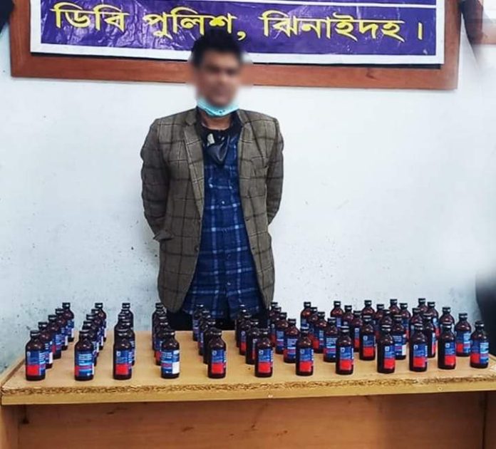 ঝিনাইদহে ৬০ বোতল ফেনসিডিল মাদক ব্যবসায়ী আটক