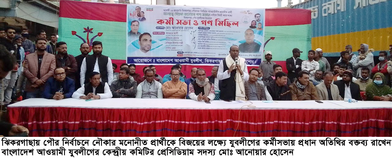 ঝিকরগাছায় পৌর নির্বাচনে নৌকার মনোনীত প্রার্থীকে বিজয়ের ল্েয যুবলীগের কর্মীসভা