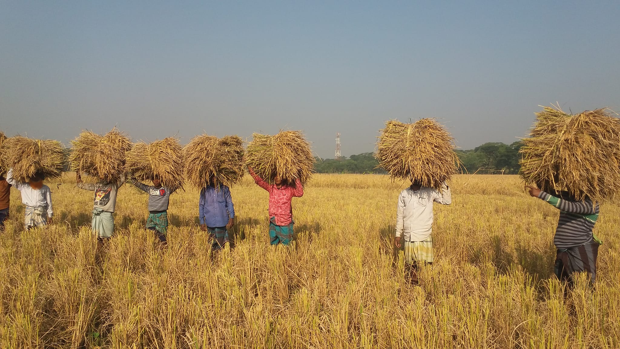 দশমিনায় নবান্ন উৎসবের আমেজ বিস্তীর্ন মাঠ জুড়ে আমন ধানের সমারোহ কৃষকরা ধান কাটছে আনন্দে