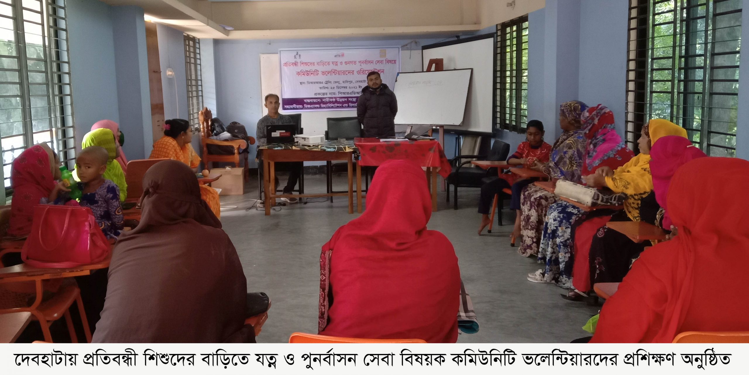 ভ্রাম্যমান প্রতিনিধি : প্রতিবন্ধী শিশুদের বাড়িতে যত্ন ও পুনর্বাসন সেবা বিষয়ক কমিউনিটি ভলেন্টিয়ারদের প্রশিক্ষণ অনুষ্ঠিত হয়েছে। শনিবার উপজেলার হাদিপুরস্থ ডিআরআরএ’র হলরুমে নারী কন্ঠ উন্নয়ন সংস্থার বাস্তবায়নে ডিজএ্যাবল্ড রিহ্যাবিলিটেশন এন্ড রিসার্চ এসোসিয়েশন (ডিআরআরএ) ও লিলিয়ান ফন্ড্স’র সহযোগীতায় এ প্রশিক্ষনের অনুষ্ঠিত হয়। প্রশিক্ষণ প্রদান করেন ডিআরআরএ’র ইনকুশেন ম্যানেজার নিলুৎপল মন্ডল। অন্যান্যদের মধ্যে কর্মশালায় উপস্থিত ছিলেন নারী কন্ঠ উন্নয়ন সংস্থার প্রাইড প্রকল্পের কো-অডিনেটর মুজিবর রহমান, কমিউনিটি মবিলাইজার সুবর্ণা পারভীন। দিনব্যাপী এ প্রশিক্ষনে দেবহাটা উপজেলার ১৩ জন ভলেন্টিয়ার অংশ গ্রহন করেন। এসময় প্রতিবন্ধী কিশোরীদের যত্ন ও পুনর্বাসন বিষয়ক বিভিন্ন বিষয়ে প্রশিন দেওয়া হয়।