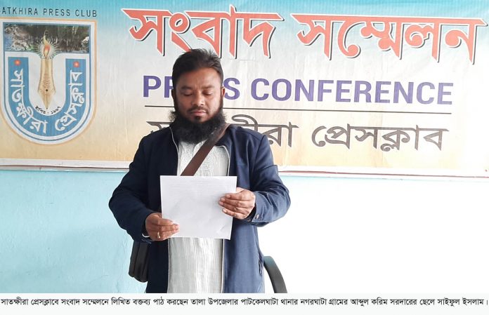 সেলিম রেজা মুকুল সাতক্ষীরা ব্যুরো প্রধান ঃ সাতক্ষীরায় ভূয়া কবিরাজ কর্তৃক পাওনা টাকা না দিয়ে উল্টো পাওনাদারকে খুন, জখম ও বাড়িতে মাদক রেখে মিথ্যা মামলায় জড়িয়ে হয়রানির করার হুমকির প্রতিবাদে সংবাদ সম্মেলন অনুষ্ঠিত হয়েছে। শনিবার দুপুরে সাতক্ষীরা প্রেসকাবের আব্দুল মোতালেব মিলনায়তনে উক্ত সংবাদ সম্মেলনের আয়োজন করেন, তালা উপজেলার পাটকেলঘাটা থানার নগরঘাটা গ্রামের আব্দুল করিম সরদারের ছেলে ভুক্তভোগী সাইফুল ইসলাম। তিনি তার লিখিত বক্তব্যে বলেন, আমি রামপাল তাপ বিদ্যুৎ কেন্দ্রের ইট, পাথর ও খোয়া সরবরাহকারী হিসেবে সুনামের সাথে ব্যবসা পরিচালনা করে আসছিলাম। সম্প্রতি সড়ক দূর্ঘটনায় আহত হওয়ার পর আমার বেয়াই আব্দুল মাজেদের পুত্র কবিরাজ শেখ মোক্তার হোসেন আমার কাজগুলো দেখাশুনার প্রস্তাব দিলে আমি সম্মত হই। আমার অসুস্থ্যতার সুযোগে মোক্তার হোসেন রামপালের ঠিকাদারদের কাছ থেকে আমার পাওনা ১১লক্ষ টাকা চেকের মাধ্যমে ও নগদ ক্যাশ নিয়ে আসলেও আমাকে তিনি দেননি। পরবর্তীতে ঠিকাদাররা আমাকে জানান পুরো টাকা মোক্তার হোসেনকে দিয়েছেন। এরপর বিভিন্ন সময়ে আমাকে ৪লক্ষ ৩০ হাজার টাকা পরিশোধ করেন। বাকী টাকা না দিয়ে তালবাহানা শুরু করেন। এনিয়ে আমরা ইউনিয়ন পরিষদের অভিযোগ দায়ের করলে ইউপি চেয়ারম্যানের সামনে হাজির হয়ে ভূয়া কবিরাজ মোক্তারের কাছে ৫লক্ষ ৫২ হাজার পাওনা থাকলেও ৪ লক্ষ টাকার কথা স্বাকীর করেন এবং দ্রুত ৪লক্ষ টাকা পরিশোধের আশ্বাস দেন। যেহেতু মোক্তার আমার সম্পর্কে বেয়াই সে কারণে আমি ৪লক্ষ টাকার প্রস্তাব গ্রহণ করি। কিন্তু এরপরও ৪লক্ষ টাকা না দিয়ে তালবাহানা করতে থাকেন। একপর্যায়ে গত ০৪/১২/২০২১ তারিখে পুনরায় টাকা পরিশোধের অনুরোধ করলেও তিনি টাকা না দিয়ে কৌশলে পালিয়ে যান। পরবর্তীতে গত ১৮/১২/২১ তারিখে বিনেরপোতাস্থ ইউনুসের চায়ের দোকানের সামনে প্রায় ৫০ জন ব্যক্তির উপস্থিতিতে তার কাছে টাকা চাইলে মোক্তার মোটরসাইকেল থেকে নেমে বলেন বাইক থাকলো আমি বাড়ি থেকে টাকা নিয়ে আসি বলে দীর্ঘ সময় অতিবাহিত হলেও তিনি ফিরে না আসায় গাড়িটি আমি আমার হেফাজতে বাড়িতে নিয়ে রাখি। এরপর আমার বেয়াই মোক্তার আদালতে আমার বিরুদ্ধে এবং আমার ছোট ভাই কবিরুলকে জড়িয়ে একটি ছিনতাই মামলা দায়ের করেন এবং তার মাদকাসক্ত ভাই শাহিনুজ্জামান আমাকে প্রকাশ্যে হুমকি প্রদর্শন করে বলছেন, আমার অফিসে বা বাড়িতে মাদকদ্রব্য রেখে মিথ্যা মামলায় ফাঁসিয়ে হয়রানি করবেন। ভাড়াটিয়া বাহিনীর সদস্যদের দিয়ে খুন জখমসহ বিভিন্ন হুমকি ধামকি প্রদর্শন করে যাচ্ছেন। শাহিনুজ্জামান ইতিপূর্বে একাধিবার ডিবি পুলিশের হাতে আটকও হয়েছেন। তিনি আরো বলেন, মোক্তার হোসেন সম্পর্কে আমার বেয়াই হওয়ায় 