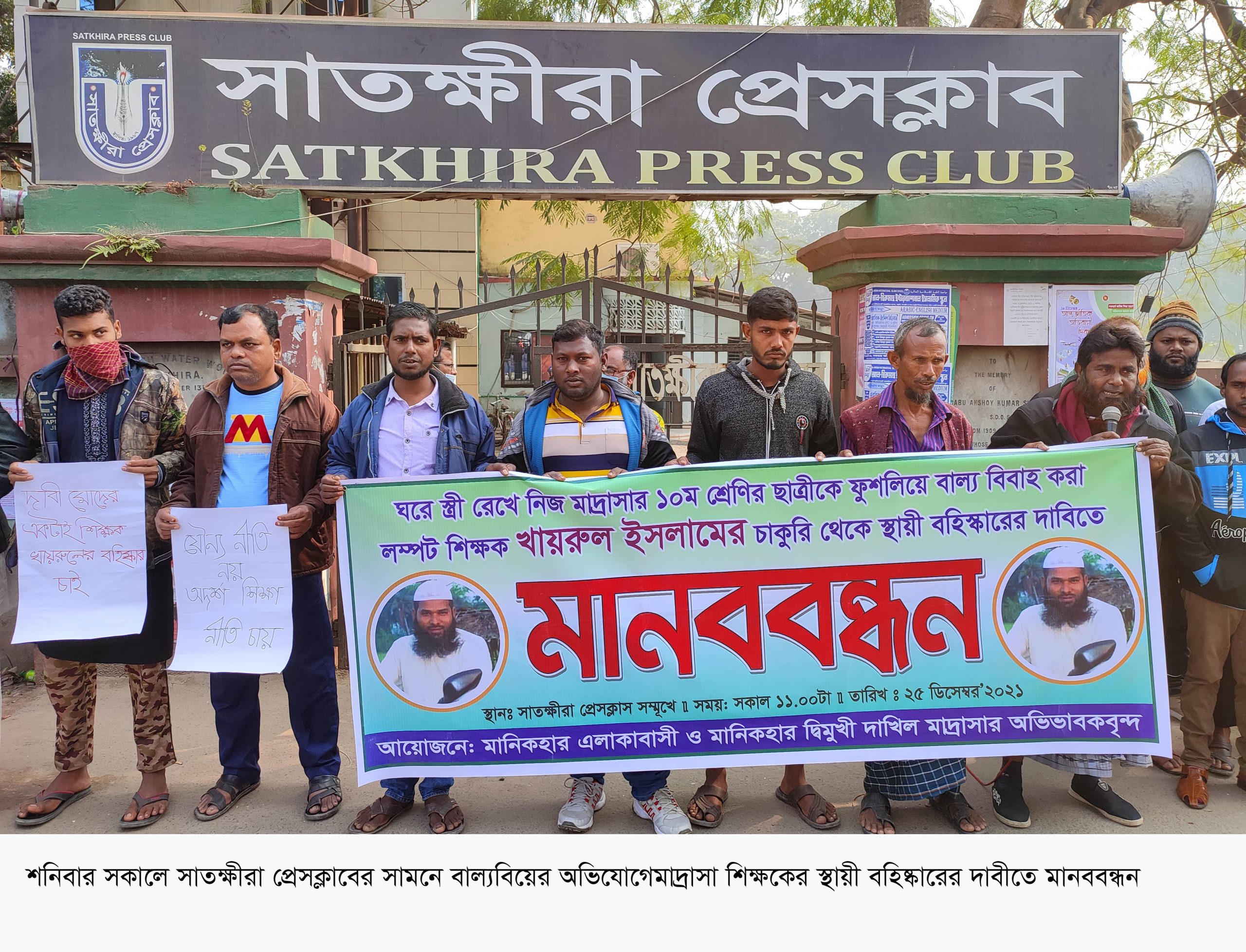 সাতক্ষীরায় মাদ্রাসার শিক্ষকের নানা অনিয়ম দূর্নীতির অভিযোগে শাস্তির দাবিতে মাবনবন্ধন