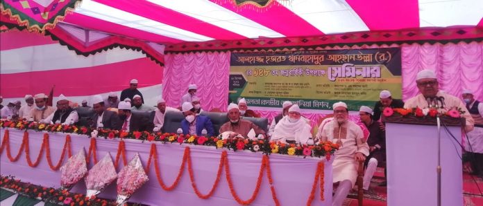 সাতীরা প্রতিনিধি ঃ অবিভক্ত বাংলা ও আসামের শিা বিভাগের সাবেক সহকারী পরিচালক (১৯৪২-১৯২৯), বিশিষ্ট শিাবিদ ও শিা সংস্কারক, সাহিত্যিক, দার্শনিক ও সমাজসেবক নলতা কেন্দ্রীয় আহ্ছানিয়া মিশনসহ অসংখ্য প্রতিষ্ঠানের প্রতিষ্ঠাতা হজরত শাহ্ছুফী আলহাজ্জ খানবাহাদুর আহ্ছানউল্লা (র.) এর ১৪৮ তম জন্মবার্ষিকী উপলে সাতীরার কালিগঞ্জ উপজেলার নলতায় সেমিনার অনুষ্ঠিত হয়েছে। শনিবার সকাল ১০ টায় নলাতা পাক রওজা শরীফ প্রাঙ্গণে এ সেমিনার অনুষ্ঠিত হয়। সেমিনারে প্রধান অতিথি হিসেবে আলোচনা রাখেন, বিশিষ্ট শিাবিদ ও পরমাণু বিজ্ঞানী বাংলাদেশ উন্মুক্ত বিশ্ববিদ্যালয়ের প্রতিষ্ঠাতা উপাচার্য এবং বাংলাদেশ একাডেমি অব সাইন্স এর সাবেক সভাপতি অধ্যাপক ড. এম শমসের আলী। নলতা কে›ন্দ্রীয় আহ্ছানিয়া মিশনের সভাপতি, বিজ্ঞান ও প্রযুক্তি মন্ত্রণালয় সম্পর্কিত সংসদীয় স্থায়ী কমিটির সভাপতি ও সাবেক স্বাস্থ্যমন্ত্রী আলহাজ্জ অধ্যাপক ডা: আ ফ ম রুহুল হক এমপি’র সভাপতিত্বে সেমিনারে ‘খানবাহাদুর আহ্ছানউল্লা ও সমকালীন সমাজ’ নামক মূল প্রবন্ধ উপস্থাপন করেন প্রবন্ধকার, সাবেক জাতীয় রাজস্ব বোর্ডের চেয়ারম্যান ও সচিব ড.মোহাম্মদ আব্দুল মজিদ। খানবাহাদুর আহ্ছানউল্লা ইন্সটিটিউটের পরিচালক প্রভাষক মনিরুল ইসলামের সঞ্চালনায় সেমিনারে অতিথি হিসেবে আলোচনা রাখেন, সাতীরার জেলা প্রশাসক মোহাম্মদ হুমায়ুন কবির, বরিশাল বিশ্ববিদ্যালয়ের দর্শন বিভাগের চেয়ারম্যান কাজী শোয়েবুর রহমান, খানবাহাদুর আহ্ছানউল্লা ইন্সটিটিউট এর মহাপরিচালক আলহাজ্জ এ এফ এম এনামুল হক, বিশিষ্ট সাহিত্যিক অধ্যাপক গাজী আজিজুর রহমান, খানবাহাদুর আহ্ছানউল্লা ইন্সটিটিউট এর উপদেষ্টা, বাংলাদেশ এশিয়াটিক সোসাইটির গবেষক এবং জাতীয় জাদুঘর এর সাবেক পরিচালক অধ্যাপক ড. আলমগীর, সাতক্ষীরা জেলা পরিষদ চেয়ারম্যান আলহাজ্জ নজরুল ইসলাম, কালিগঞ্জ উপজেলা নির্বাহী অফিসার খন্দকার রবিউল ইসলাম, নলতা পাক রওজা শরীফের খাদেম আলহাজ্জ মৌ. আব্দুর রাজ্জাক প্রমূখ। প্রধান অতিথি বলেন, হজরত খানবাহাদুর আহ্ছানউল্লা (র.) ছিলেন পৃথিবীর শ্রেষ্ঠ সুফী-সাধক। ইসলামের ৫ টি মূল স্তম্ভের বাইরে অনেক কিছু করার আছে। যেটি তিনি করে গেছেন। তিনি কর্মজীবন ও আধ্যাত্মিক সাধনার পাশাপাশি স্রষ্টার সৃষ্টিকে সেবা করে গেছেন। মানুষকে ভালো বেসেছেন। তিনি এ সময় নতুন প্রজন্মকে এধরনের সেমিনারে উপস্থিত হওয়ার আহবান জানান।