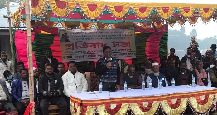 মঙ্গলবার (২৮ ডিসেম্বর) বিকালে বাসুয়াড়ী মাদ্রাসা মাঠে আওয়ামীলীগ নেতা শুকুর গাজী সভাপতিত্বে প্রতিবাদ সমাবেশে প্রধান অতিথি হিসাবে বক্তব্য রাখেন উপজেলা আওয়ামীলীগের সভাপতি এনামুল হক বাবুল, বিশেষ অতিথি হিসাবে বক্তব্য রাখেন উপজেলা আওয়ামীলীগের সাধারণ সম্পাদক সরদার অলিয়ার রহমান, অন্যান্যর মধ্যে বক্তব্য রাখেন আওয়ামীলীগ নেতা মাহামুদ হাসান লিটন, লাভলু শেখ, মো: নুরজালাল জুয়েল,মোল্যা সহিদুল ইসলাম প্রমুখ।