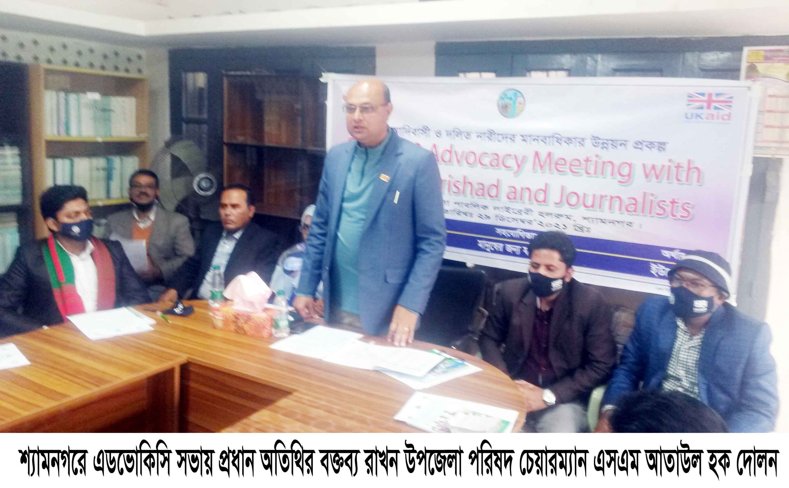 শ্যামনগর ব্যুরো ঃ সুন্দরবন আদীবাসি মুন্ডা সংস্থা (সামস্) এর আয়োজনে, মানুষের জন্য ফাউন্ডেশনের সহযোগিতায় ও ইউকে এইড এর অর্থায়নে শ্যামনগরে কোভিড-১৯ এ আদিবাসী মুন্ডা ও দলিত সহ নিম্ন শ্রেণীর সুবিধা বঞ্চিত মানুষদের সহযোগিতা ও তাদের এলাকার বিভিন্ন সমস্যা নিরসনে এডভোকেসি সভা অনুষ্ঠিত। গতকাল সকাল ১১ টায় শ্যামনগর সদরে পাবলিক লাইব্রেরির সভাকক্ষে এ আলোচনা সভায় উপস্থাপক ছিলেন সামস্রে ভগবতী হালদার। পাবলিক লাইব্রেরীর যুগ্ম সাধারন সম্পাদক শিক্ষক রনজিত কুমার বর্মনের সভাপতিত্বে বিষয়ের উপর বিস্তারিত বক্তব্য রাখেন সামস্রে প্রকল্প সমন্বয়কারী যোসেফ সরকার। দলিতদের পক্ষে কয়েক নারী পুরুষ মুক্ত আলাপে তাদের বিভিন্ন সমস্যা সমাধানের দাবি জানান। প্রধান অতিথি উপজেলা পরিষদ চেয়ারম্যান এসএম আতাউল হক দোলান তার বক্তব্যের মাঝে উপস্থিতিদের উল্লেখিত দাবি সমূহ পূরন করার আশ্বাস প্রদান করেন। বিশেষ অতিথির বক্তব্য রাখেন, উপজেলা ভাইস চেয়ারম্যান সাঈদ উজ জামান সাঈদ, মহিলা ভাইস চেয়ারম্যান খালেদা আইয়ুব ডলি, ওসিসি কর্মকর্তা প্রণব বিশ্বাস প্রমুখ।