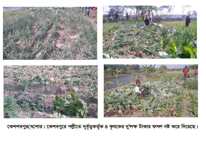 কেশবপুরে পল্লীতে ৪ কৃষকের দু’লক্ষ টাকার ফসল নষ্ট করে দিয়েছে দুর্বৃত্তরা