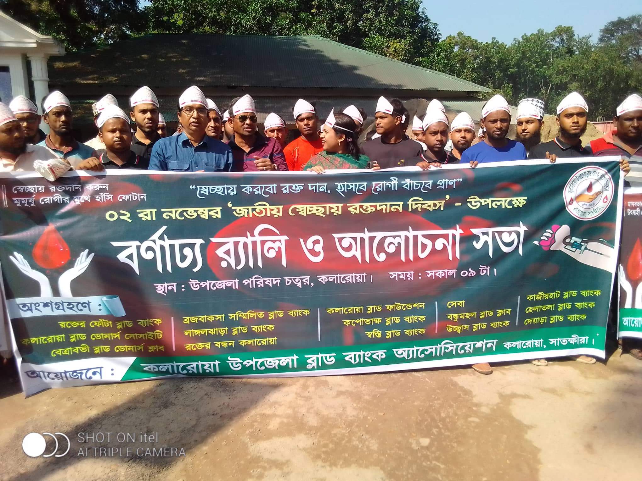 এম,এ সাজেদ, কলারোয়া( সাতক্ষীর) প্রতিনিধিঃ কলারোয়ায় জাতীয় স্বেচ্ছায় রক্তদান দিবস-২২ পালিত হযেছে। বুধবার(২ নভেম্বর) সকাল ১০ টায় দিবসটি পালনে বর্নাঢ্য শোভাযাত্রা ও আলোচনা সভা অনুষ্ঠিত হয়। “স্বেচ্ছায় করবো রক্ত দান’ হাসবে রোগী বাঁচবে প্রাণ” এই প্রতিপাদ্যকে সামনে রেখে উপজেলা ব্লাড ব্যাংক অ্যাসোসিয়েশনের আয়োজনে অনুষ্ঠিত বর্নাঢ্য শোভাযাত্রাটি পৌর সদরের প্রধান প্রধান সড়ক প্রদক্ষিন করে আলোচনা সভায় মিলিত হয়। উপজেলা পরিষদ মিলনায়তনে অনুষ্ঠিত আলোচনা সভায় প্রধান অতিথি হিসাবে উপস্থিত ছিলেন উপজেলা পরিষদ চেয়ারম্যান আমিনুল ইসলাম লাল্টু। স্বেচ্ছসেবী সামাজিক সংগঠন সেবা’র আহবায়ক শিক্ষক শেখ শাহাজাহান আলী শাহীনের সভাপতিত্বে বিশেষ অতিথি হিসাবে উপস্থিত ছিলেন উপজেলা নির্বাহী অফিসার( ইউএনও) রুলী বিশ্বাস, উপজেলা স্বাস্থ্য কমপ্লেক্সের আবাসিক মেডিকেল অফিসার( আরএমও) ডাক্তার শফিকুল ইসলাম, পাবলিক ইনস্টিটিউটের সাধারণ সম্পাদক ও সেবা’র উপদেষ্টা এ্যাডঃ শেখ কামাল রেজা, প্রধান শিক্ষক বদরুজ্জামান বিপ্লব।সেবা’র সদস্য সচিব মাস্টার মিজানুর রহমানের পরিচালনায় সভায় অতিথি হিসাবে বক্তব্য রাখেন ও উপস্থিত ছিলেন সাংবাদিক জাকির হোসেন, সাংবাদিক আরিফুল হক চৌধুরী, সাংবাদিক সরদার জিল্লুর রহমান, স্বেচ্ছাসেবী সংগঠন রক্তে ফোঁটার কর্মকর্তা মনিরুল ইসলাম, সম্মিলিত ব্লাড ব্যাংকের কর্মকর্তা সুজন চৌধুরী, স্বেচ্ছাসেবী সংগঠনের কর্মকর্তা শাওন শ্রাবন, হাবিবুল্লাহ হাবিব, সাংবাদিক এমএ সাজেদ, সাংবাদিক তরিকুল ইসরাম সহ বিভিন্ন সামাজিক সংগঠনের কর্মকর্তা, সদস্যবৃন্দ, রক্তাদাতাগণ ও সূধিবৃন্দ। বক্তারা, মুমুর্ষ রোগীদের প্রাণ বাঁচাতে স্বেচ্ছায় রক্তদান করে মানবিক সেবায় সকলকে এগিয়ে আসার আহবান জানান। উল্লেখ্য, মানবিক সহায়তায় কলারোয়ার সামাজিক স্বেচ্ছাসেবী সংগঠন সেবা, রক্তের ফোঁটা ব্লাড ব্যাংক, কলারোয়া ব্লাড ডোনার্স সোসাইটি, বেত্রাবতী ব্লাড ডোনার্স ক্লাব, ব্রজবাকসা সম্মিলিত ব্রাড ব্যাংক, লাঙ্গঝাড়া ব্রাড ব্যাংক, রক্তের বন্ধন- কলারোয়া, কলারোয়া ব্লাড ফাউন্ডেশন, কপোতাক্ষ ব্লাড ব্যাংক, স্বস্তি ব্লাড ব্যাংক, বন্ধু মহল ব্লাড ব্যাংক, উচ্ছাস ব্লাড ব্যাংক, কাজীরহাট ব্লাড ব্যাংক, হেলাতলা ব্লাড ব্যাংক, দেয়াড়া ব্লাড ব্যাকের সমন্বয়ে “কলারোয়া উপজেলা ব্লাড ব্যাংক আ্যাসোসিয়েশন” সংগঠনটির আত্মপ্রকাশ ঘটেছে বলে জানা যায়।
