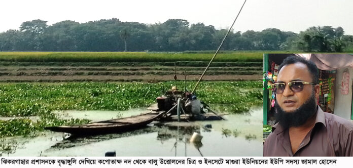 স্থানীয় সূত্রে জানা যায়, উপজেলার ২নং মাগুরা ইউনিয়নের মাগুরা, ৪নং গদখালী ইউনিয়নের বারবাকপুর, ৬নং সদর ইউনিয়নের হাড়িয়াদেয়াড়া, মিশ্রিদেয়াড়া গ্রামের বিভিন্ন পয়েন্টে কপোতা নদের মাঝখানে বড় বড় শ্যালো মেশিন বসিয়ে পাইপ দিয়ে অবৈধ ভাবে বালু উত্তোলন করা হচ্ছে। কোথাও সেই বালু দিয়ে পুকুর ভরাট করা হচ্ছে আবার কোথাও বিক্রির জন্য বালুর স্তুপ তৈরি করে মজুদ করে রাখা হচ্ছে।