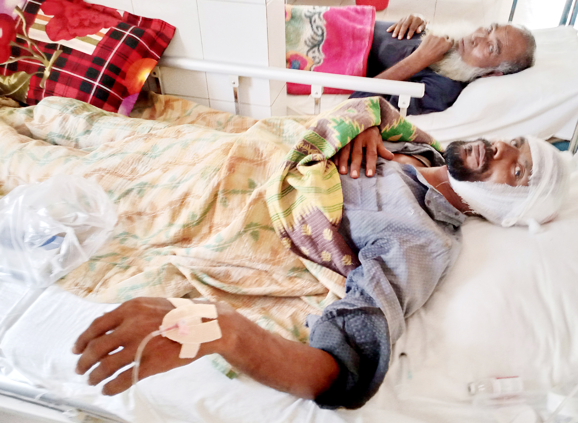 স্টাফ রিপোটার:- মণিরামপুরের শ্যামকুড় ইউনিয়নের জামলা গ্রামে গাছ কাটাকে কেন্দ্র করে আব্দুর রশিদ নামের এক ব্যক্তিকে বেধড়ক পিটিয়ে মাথা ফাটিয়ে গুরুতর আহত করেছে শিমুল গংরা। আহত আব্দুর রশিদ মণিরামপুর হাসপাতালে চিকিৎসাধীন রয়েছে। জানা যায়, মণিরামপুর উপজেলার জামলা গ্রামের চান্দালী গাজীর ছেলে আব্দুর রশিদ ও ইকবাল হোসেন তাদের ক্রয়কৃত সম্পত্তি থেকে তাদের পিতা বুধবার সকালে একটি রেন্টি গাছ (কাটতে) মারতে যায়। এ সময় নিজেদের গাছ দাবি করে পাশের বাড়ির মৃত আব্দুল হামিদের স্ত্রী রহিমা, ছেলে শিমুল, মেয়ে শিলা, শিরিনা ও শিমুলের সহপাঠি গোবিন্দপুর গ্রামের সোহান তাদের উপর হামলা করে বেধড়ক মারপিট করে। এতে আব্দুর রশিদের মাথা ফেটে গুরুতর জখম হয়। সে মণিরামপুর স্বাস্থ কমপ্লেস্কে চিকিৎসাধীন রয়েছে। এছাড়া মারপিটে আহত হয়েছে রশিদের স্ত্রী আমেনা খাতুন ও ইকবাল হোসেন। এ বিষয়ে আহত ইকবাল হোসেন বলেন, আমার পিতা ওই জমি আমাদের তিন ভাইকে লিখে দিয়েছে। ওই জমির উপর থাকা একটি রেন্টি গাছ আমার পিতা বিক্রি করে। ওই গাছ বূধবার সকালে মারতে গেলে তারা আমার পিতার উপর হামলা করে মারপিটের উদ্ধত হয়। এ সময় আমরা তিন ভাই এগিয়ে গেলে শিমুলসহ তারা আমাদের উপর ঝাঁপিয়ে পড়ে বেধড়ক মারপিট করে আহত করেছে। এ ঘটনা থানায় মামলার প্রস্তুথি চলছে।
