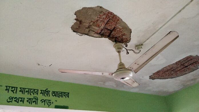 বৃহস্পতিবার(১০ নভেম্বর ২২) সকাল ৭ টার সময় স্বাস্থ্য কমপ্লেক্সের মহিলা ওর্য়াডে এঘটনা ঘটেছে। আহত হলেন কালীগঞ্জের ৭নং রায়গ্রাম ইউপি এলাকার সিংগী গ্রামের হারুন শেখের স্ত্রী (হাসপাতালে ভর্তি রোগি) মনোয়ার বেগম(৪৫) তার কন্যা মৌসুমি খাতুন(২৪) ও খোকন শেখের স্ত্রী ফুলজান নেছা( ৪৪)।এর মধ্যে মৌসুমি খাতুনের অবস্থা আশংকাজনক। অপর ২ জনকে কালীগঞ্জ উপজেলা স্বাস্থ্য কমপ্লেক্সে রেখে চিকিৎসা চলছে। এব্যপারে সিংগী গ্রামের হারুন শেখ জানান,গত বুধবার( ৯ নভেম্বর) তার স্ত্রীর হঠাৎ প্রেসার কম ও দুর্বল হয়ে যায়।পরে তাকে কালীগঞ্জ হাসপাতালে নিয়ে এলে জরুরি বিভাগের ডাক্তার দেখানোর পর ভর্তি করা হয়।এসময় তার কণ্যা মৌসুমি ও ভাইয়ের স্ত্রী ফুলজান নেছা সাথে থেকে। বৃহস্পতিবার সকালে হঠাৎ ছাদ খসে পড়ে।এরপর আমার কণ্যা মৌসুমি ও ভাবি ফুলজান নেছা গুরুতর আহত হয় ও অল্পের জন্য স্ত্রী মনোয়ারা রক্ষা পায়।আহত মৌসুমি খাতুন এর অবস্থা আশংকাজনক হওয়ার কারণে তাকে প্রাথমিক চিকিৎসা দিয়ে জরুরি ভাবে যশোর মেডিকের কলেজ হাসপাতালে নিয়ে যায় ও ফুলজাননেছার পায়ের ক্ষত স্থানে ২০/২২ টি সেলাই দেওয়া হয়েছে। বর্তমানে পুরুষ ওর্য়াডে রেখে তাদের চিকিৎসা চলছে। কালীগঞ্জ উপজেলা স্বাস্থ্য কমপ্লেক্সের আবাসিক মেডিকেল অফিসার ( আরএমও)